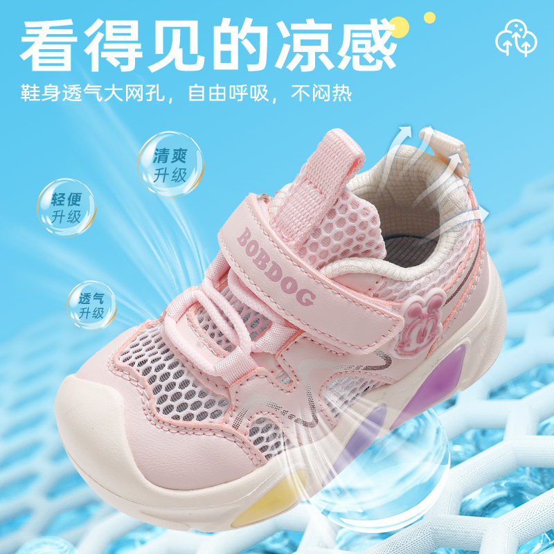 巴布豆童鞋女童鞋子2026新款夏季网鞋发光鞋女宝宝亮灯儿童学步鞋