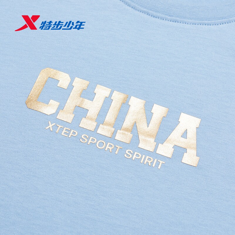特步童装男童纯棉短t2026夏季新款女童速干短袖t恤中大童夏装上衣