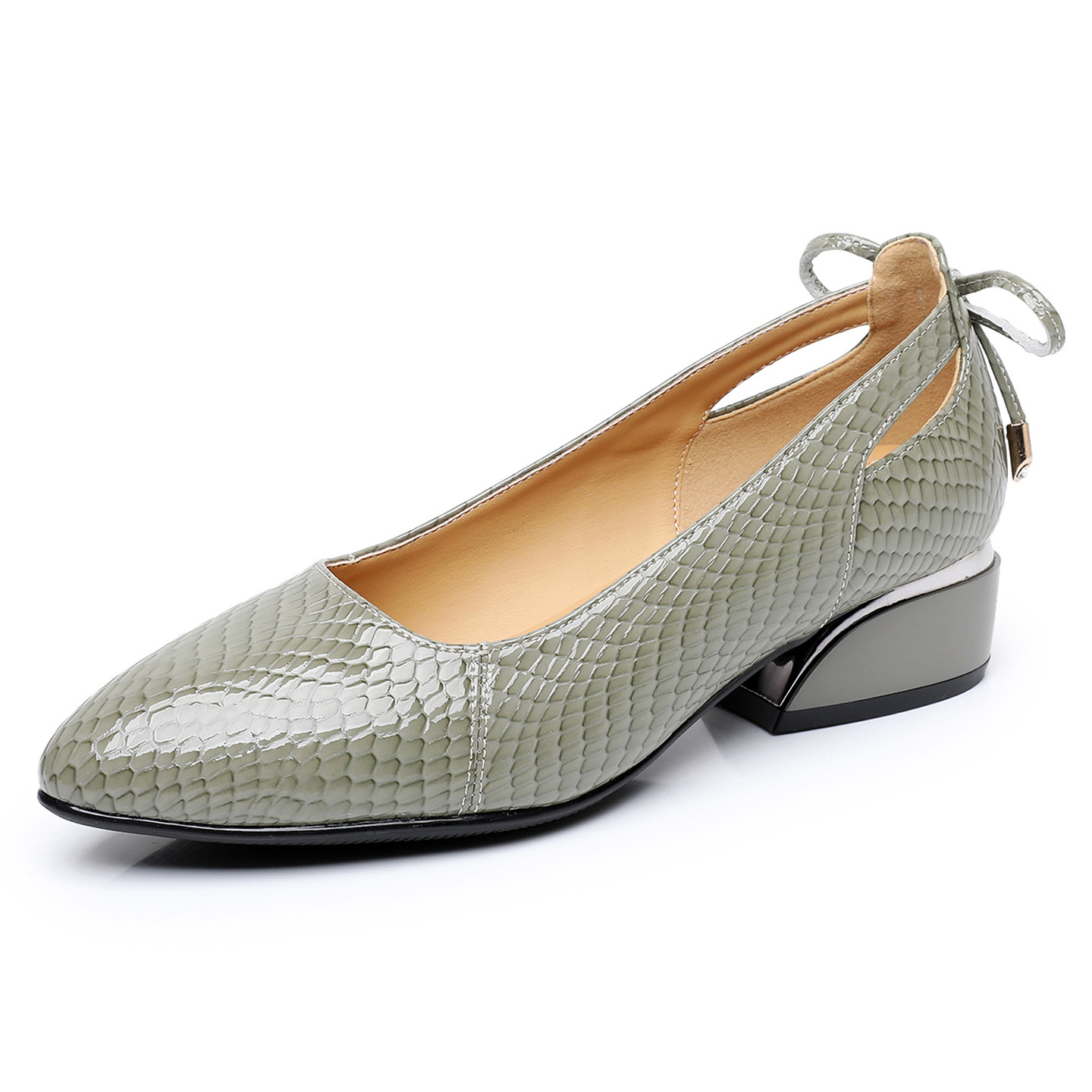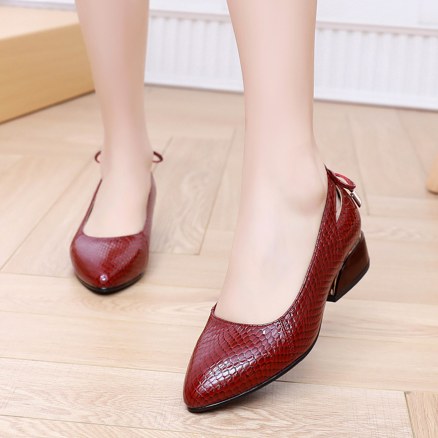 漆皮粗跟单鞋春夏真皮百搭软底妈妈鞋大码低跟女鞋不累脚浅口皮鞋
