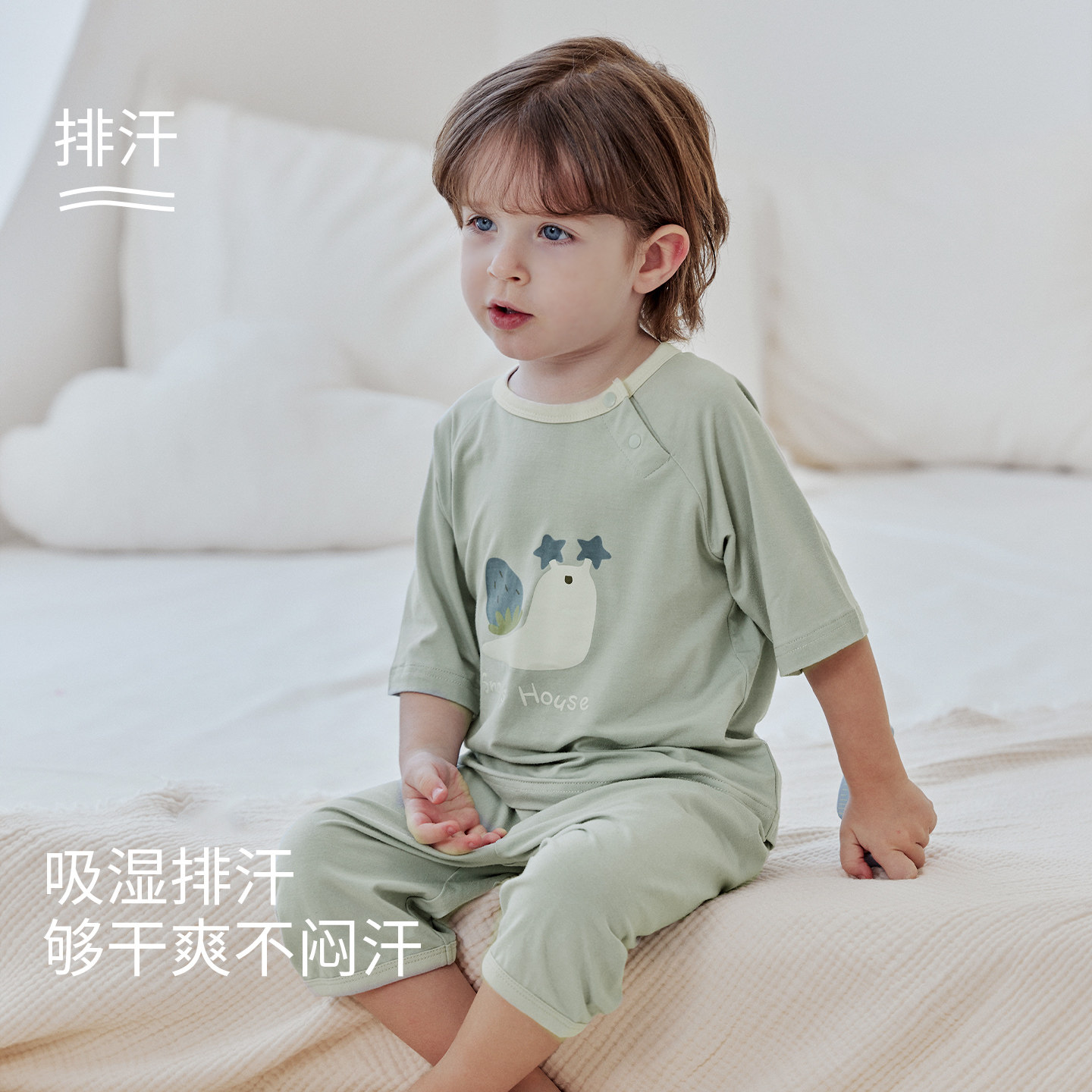 【天丝莱赛尔】儿童家居服夏季短袖薄款男童套装女童衣服宝宝睡衣