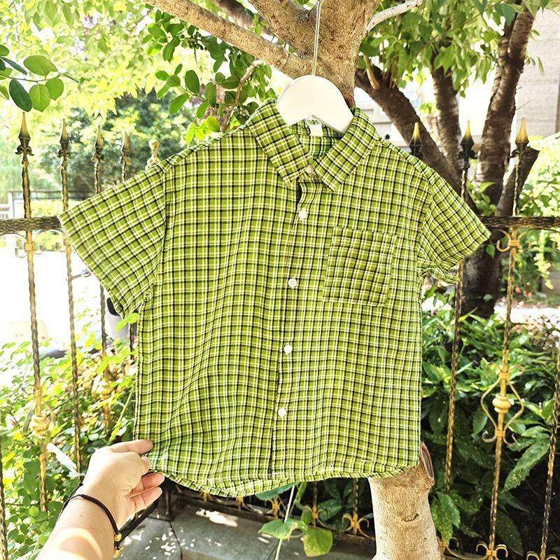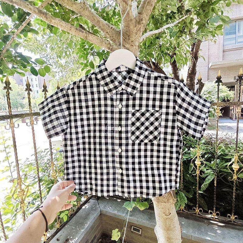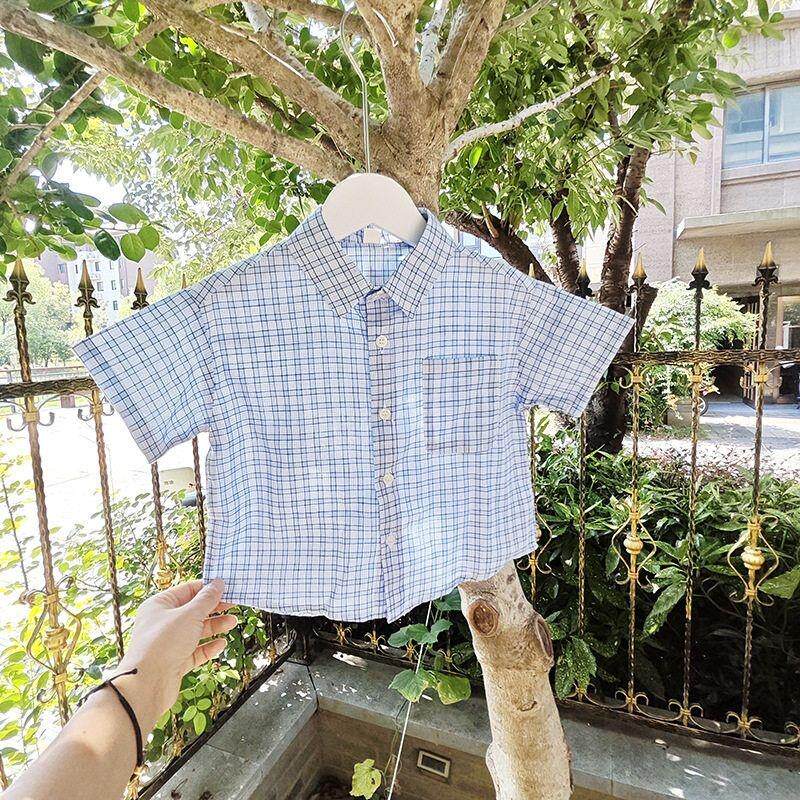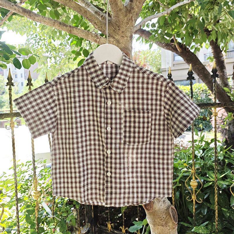 贝哆哈儿童短袖衬衫中小童夏季翻领格子衬衫男童女童衬衣休闲上衣