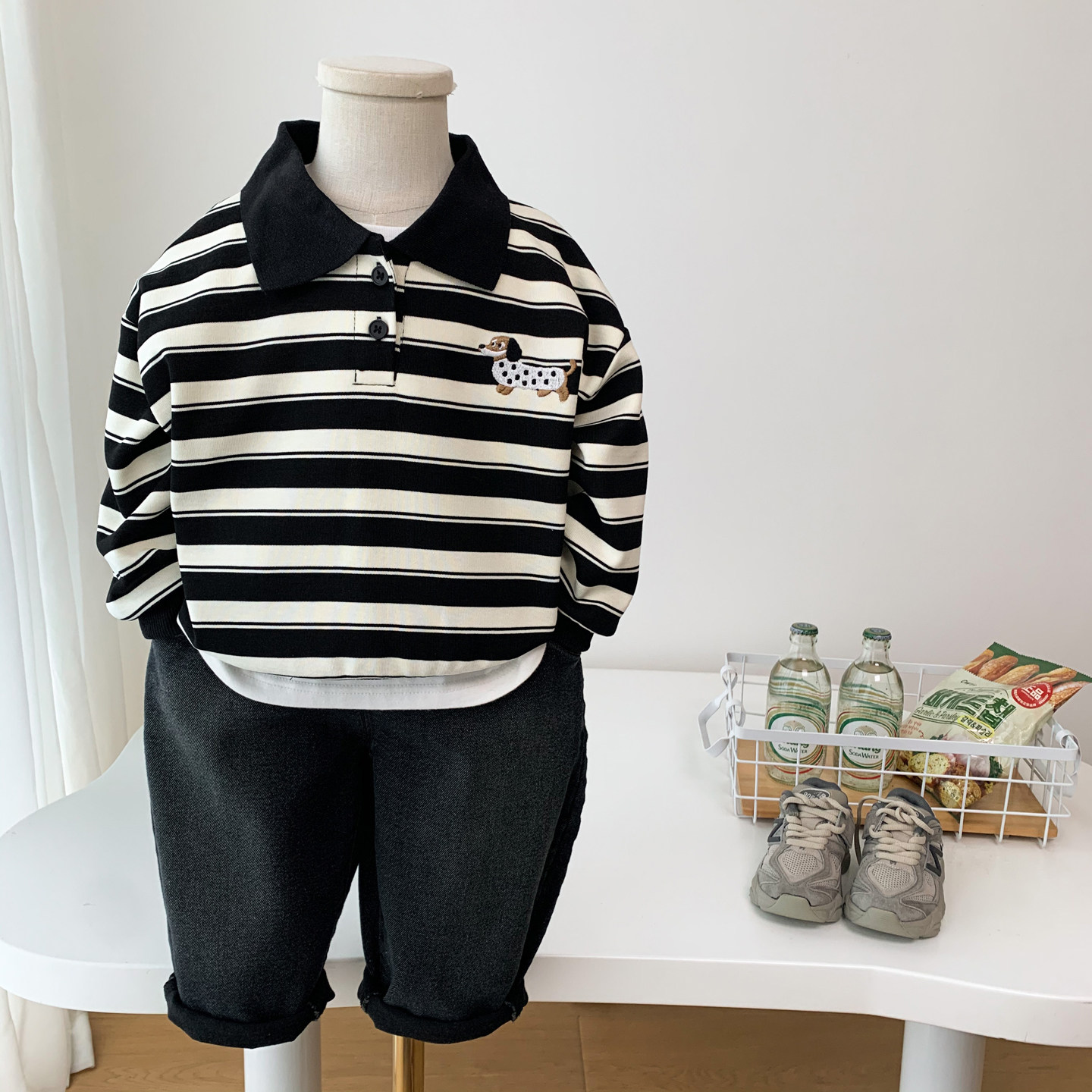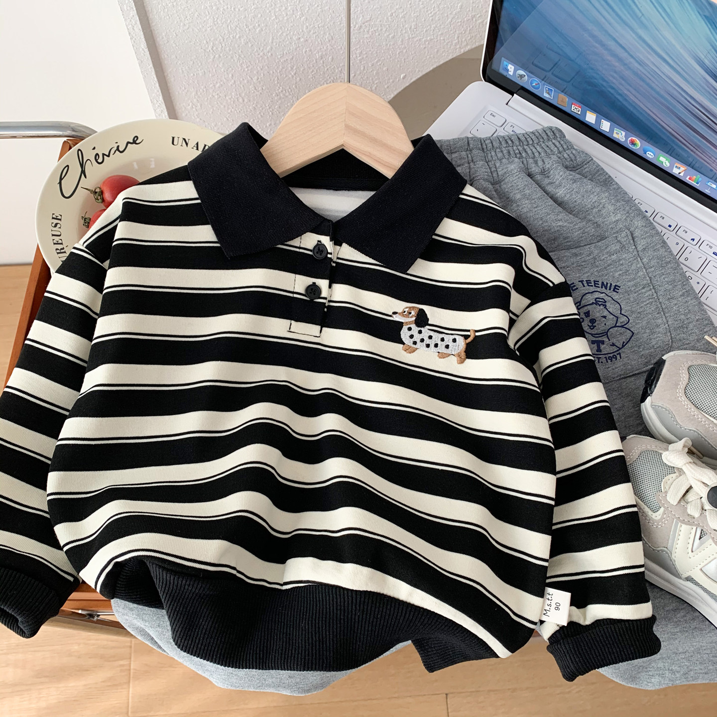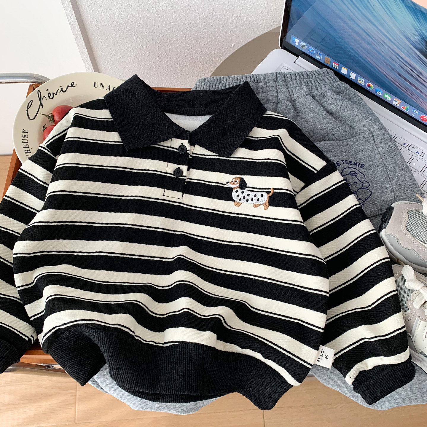 男童春装POLO衫2026新款儿童洋气条纹卡通卫衣帅气男孩翻领套头衫