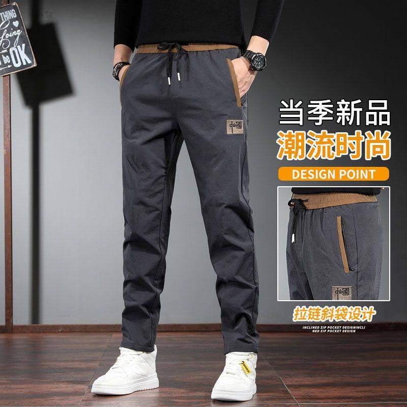 秋冬季休闲裤男款修身小脚直筒运动长裤子潮牌青少年外穿加绒卫裤