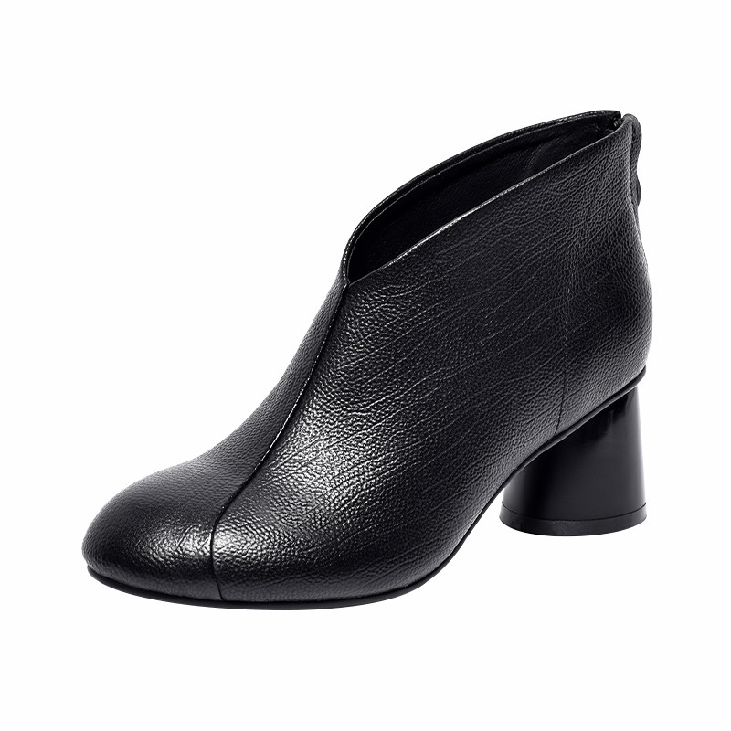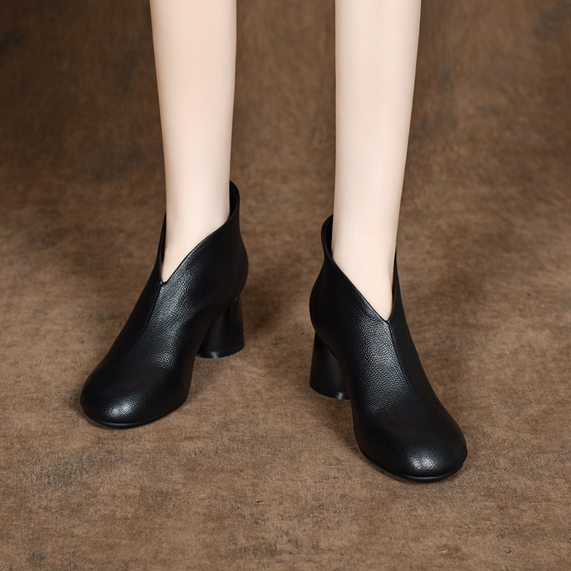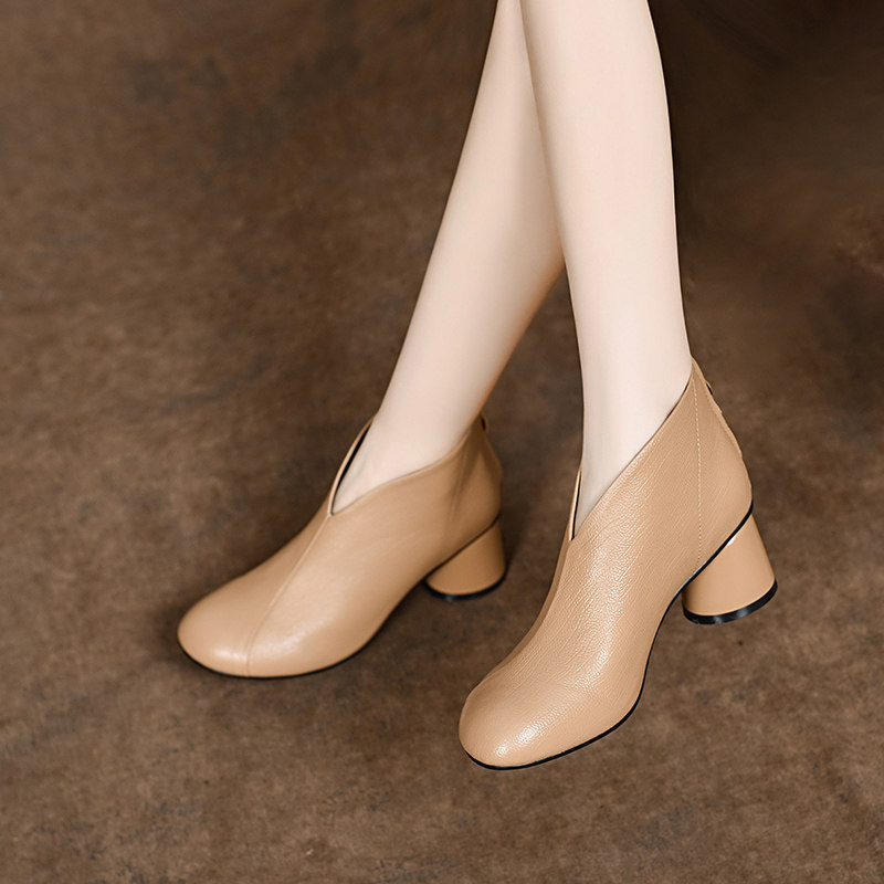 2026新款春季女鞋软皮粗跟高跟鞋小短靴春秋女士及踝靴中跟真皮鞋