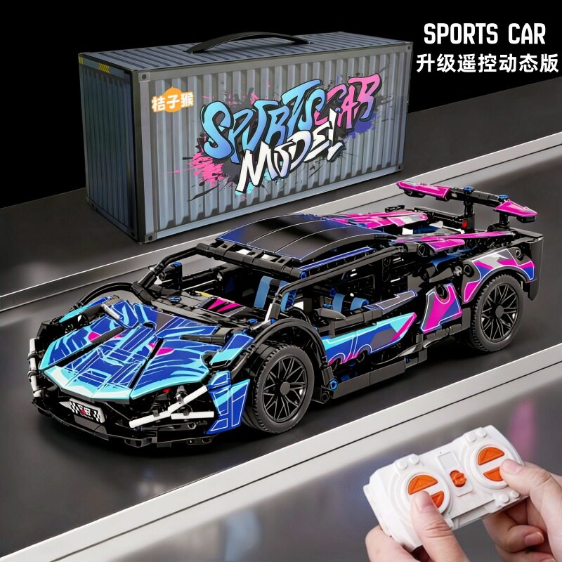 兼容乐高遥控玩具积木车拼装超跑儿童玩具汽车赛车模型跨境小颗粒