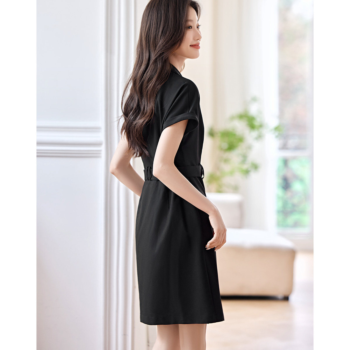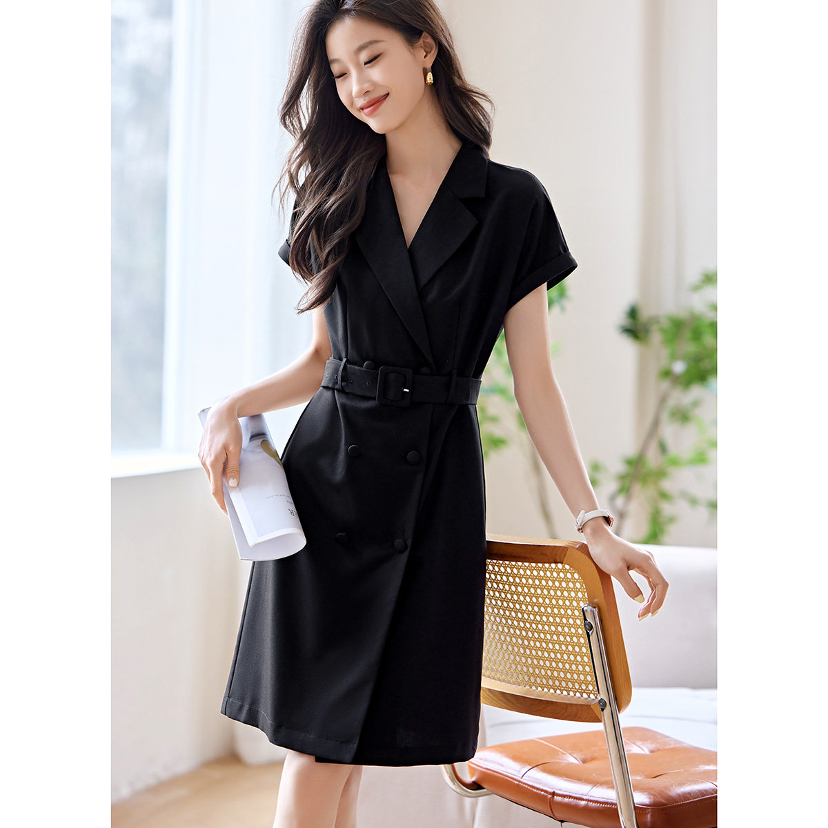 沫晗依美落肩袖西装收腰职场通勤气质连衣裙2026夏季新款连衣裙女