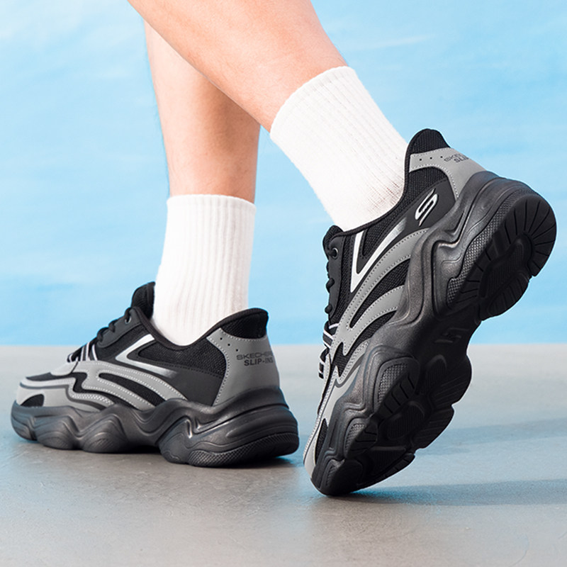 斯凯奇男鞋2025春夏新款老爹鞋网面透气低帮运动鞋闪穿舒适休闲鞋