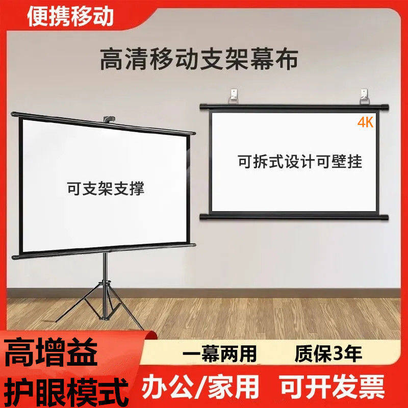 支架幕布投影幕布落地移动便携支架杆可壁挂家用高清卧室投影仪幕布两用支架户外投影仪投屏办公幕布