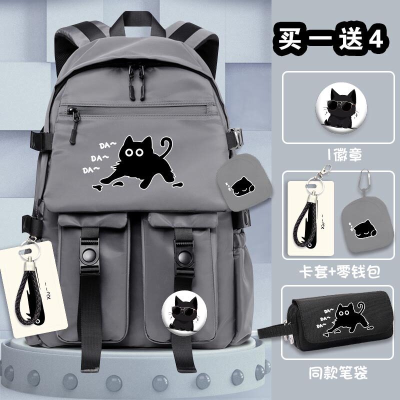 黑猫书包简约大容量背包学生初中高中大学电脑包潮牌时尚男旅行