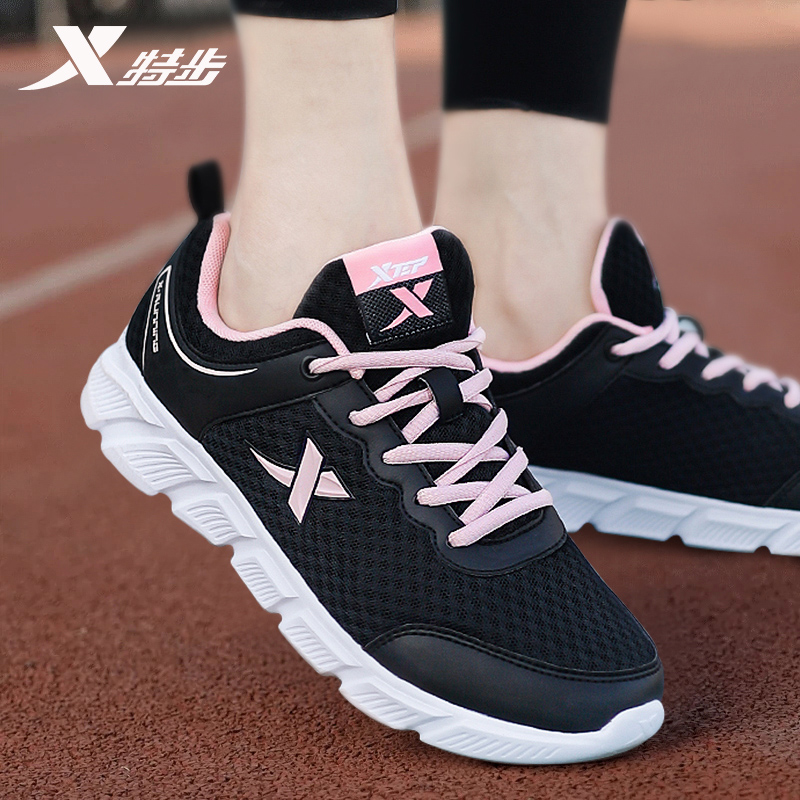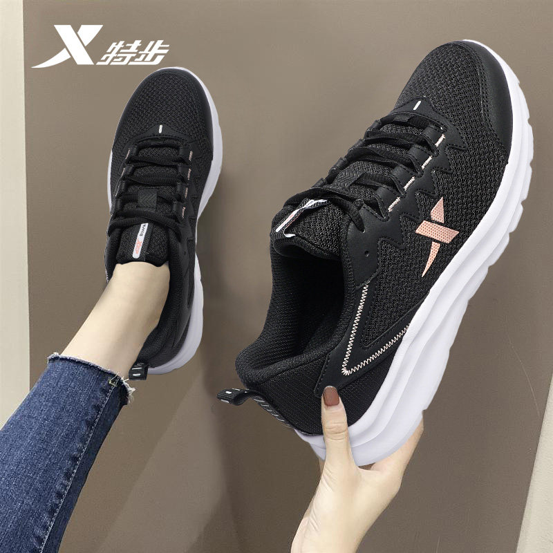 特步女鞋春季2026新款跑步鞋黑色正品休闲鞋子网面透气运动鞋女款