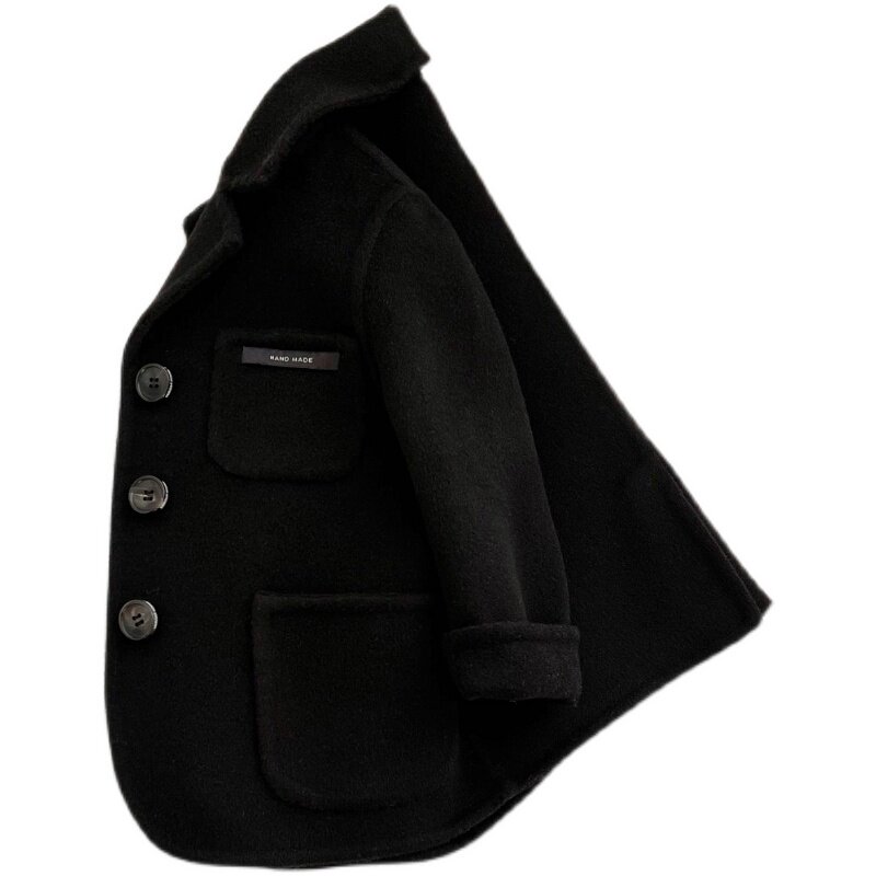 经典黑色西装双面羊绒秋冬男童女童洋气羊毛呢子大衣大童短款外套