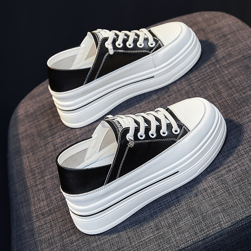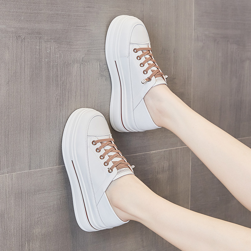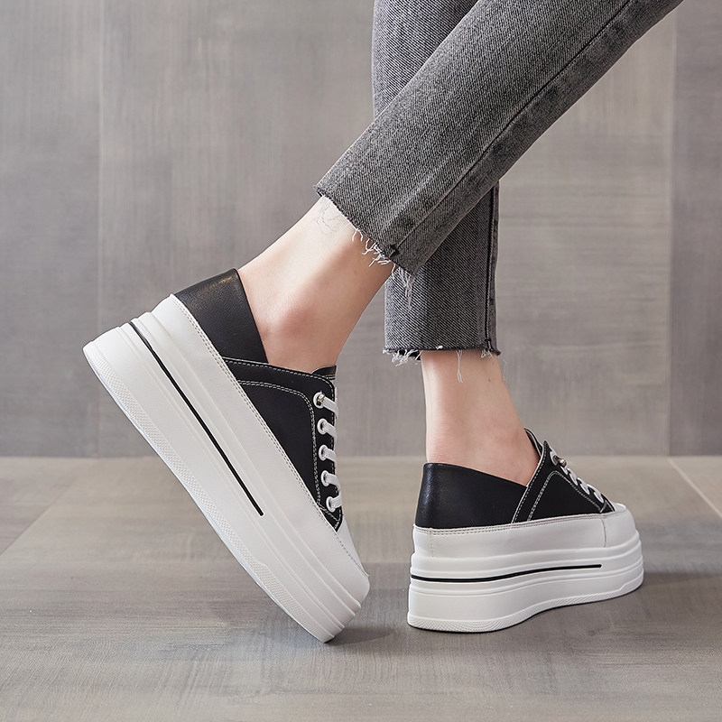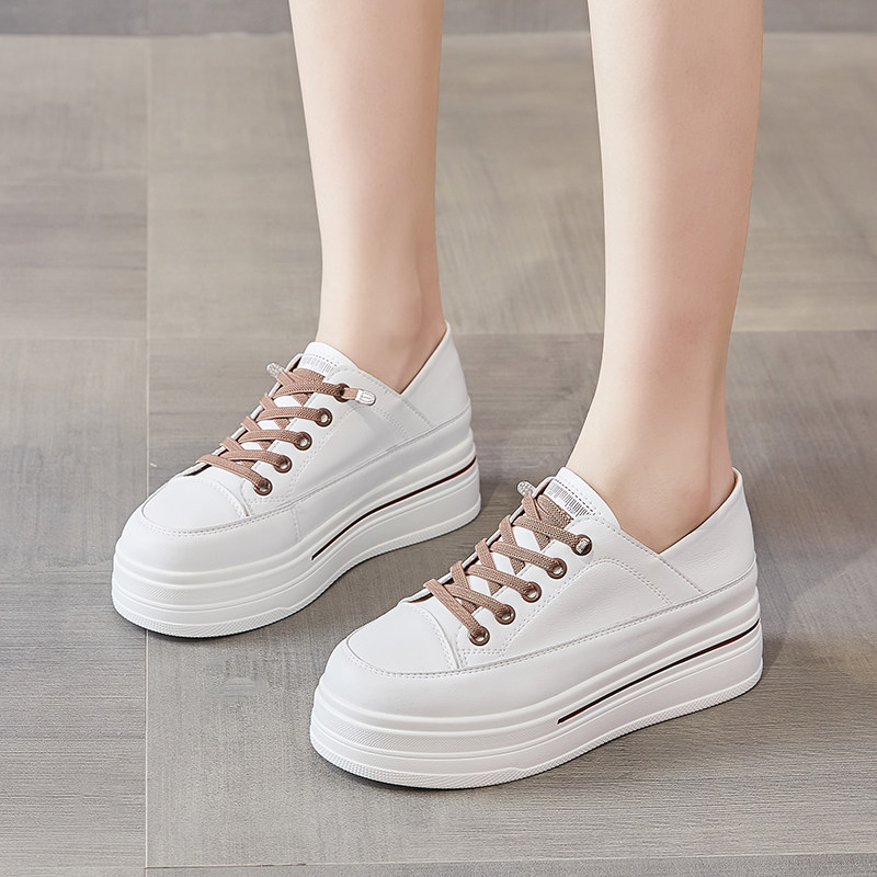 显脚小内增高女鞋隐形小个子百搭厚底真皮小白鞋女春秋显瘦松糕鞋