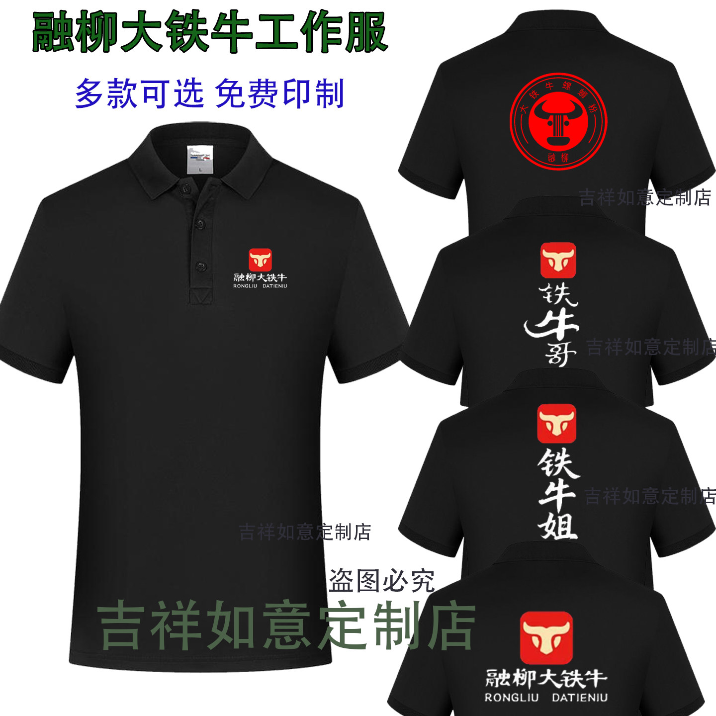 新款融柳大铁牛螺蛳粉工作服短袖连锁小吃店男女纯棉T恤定制logo