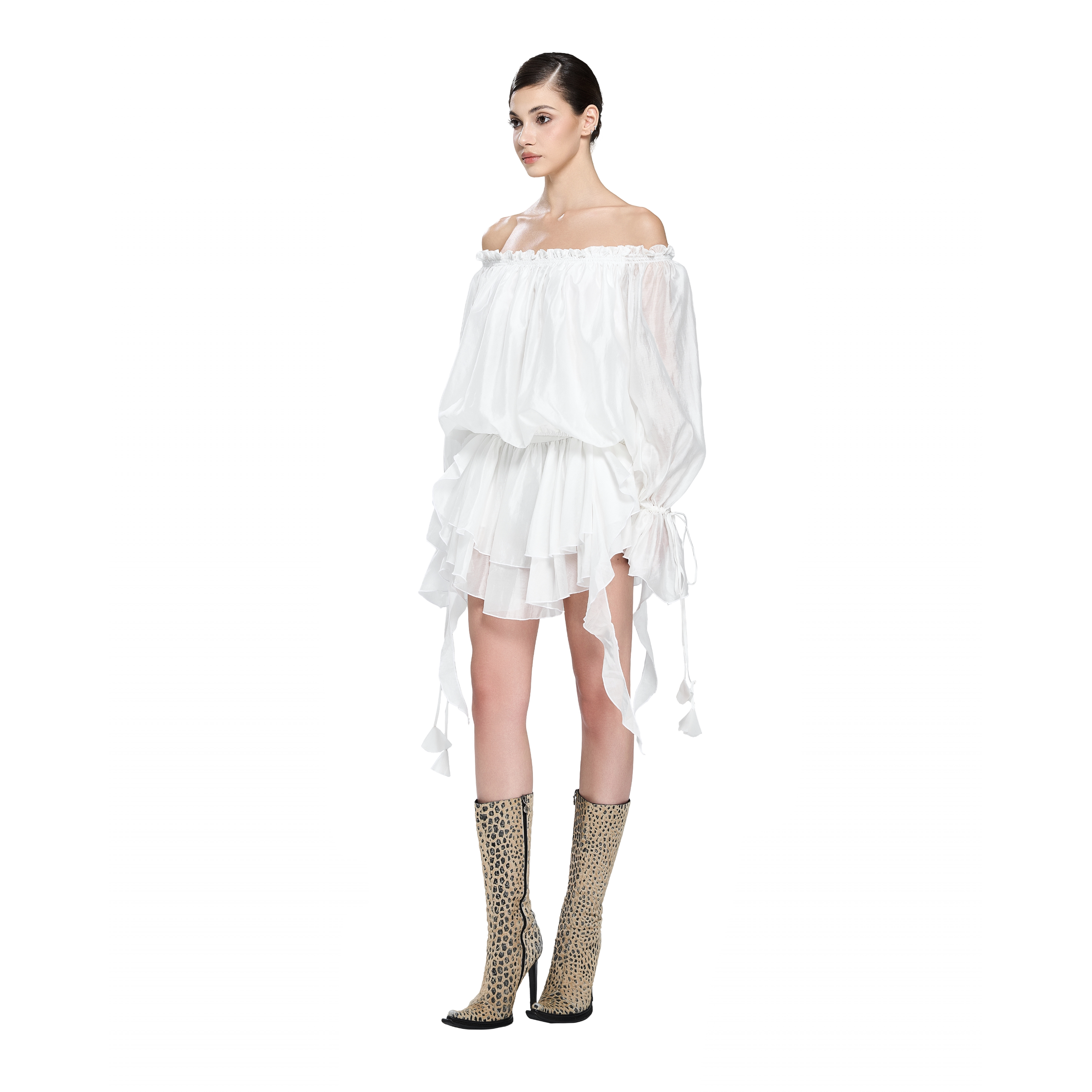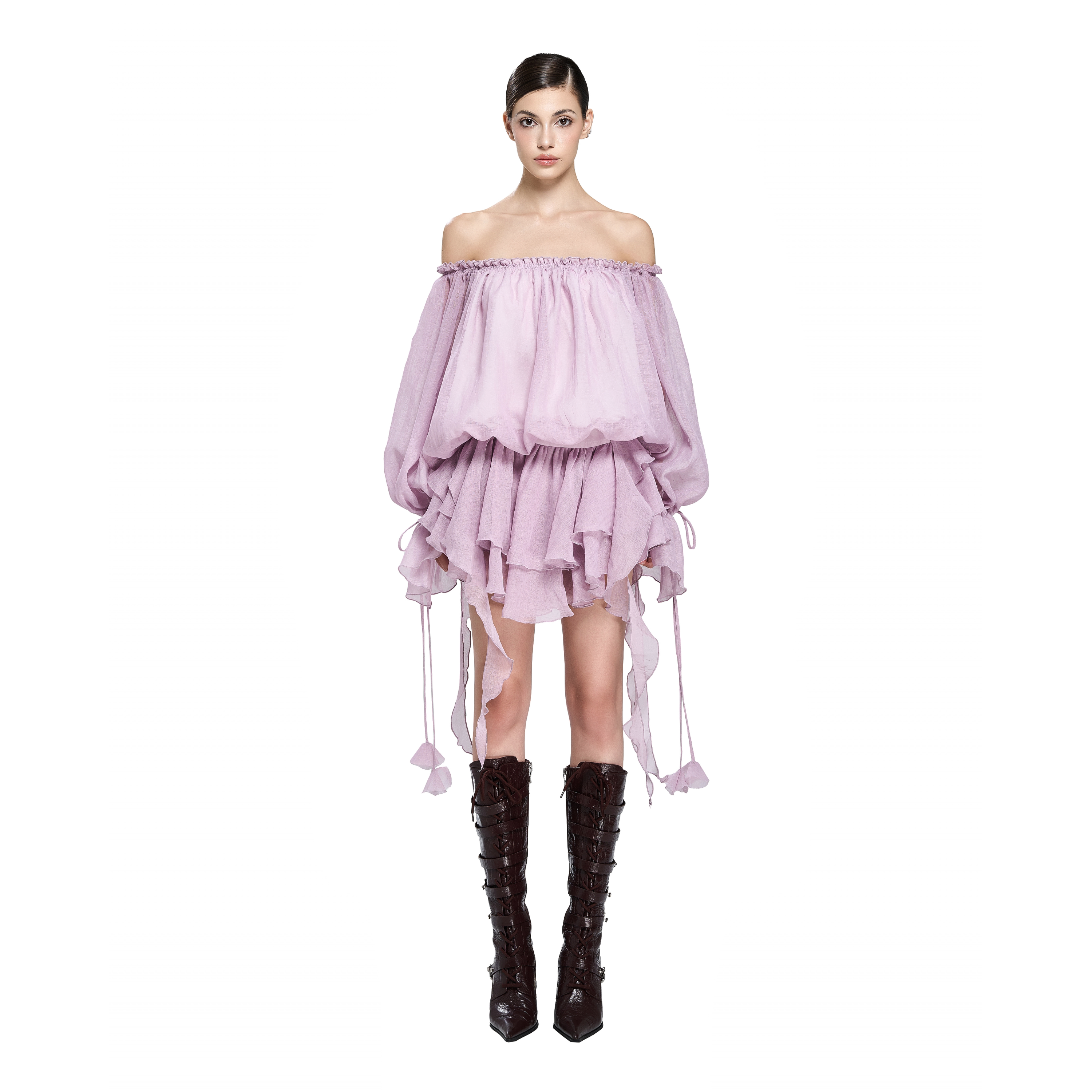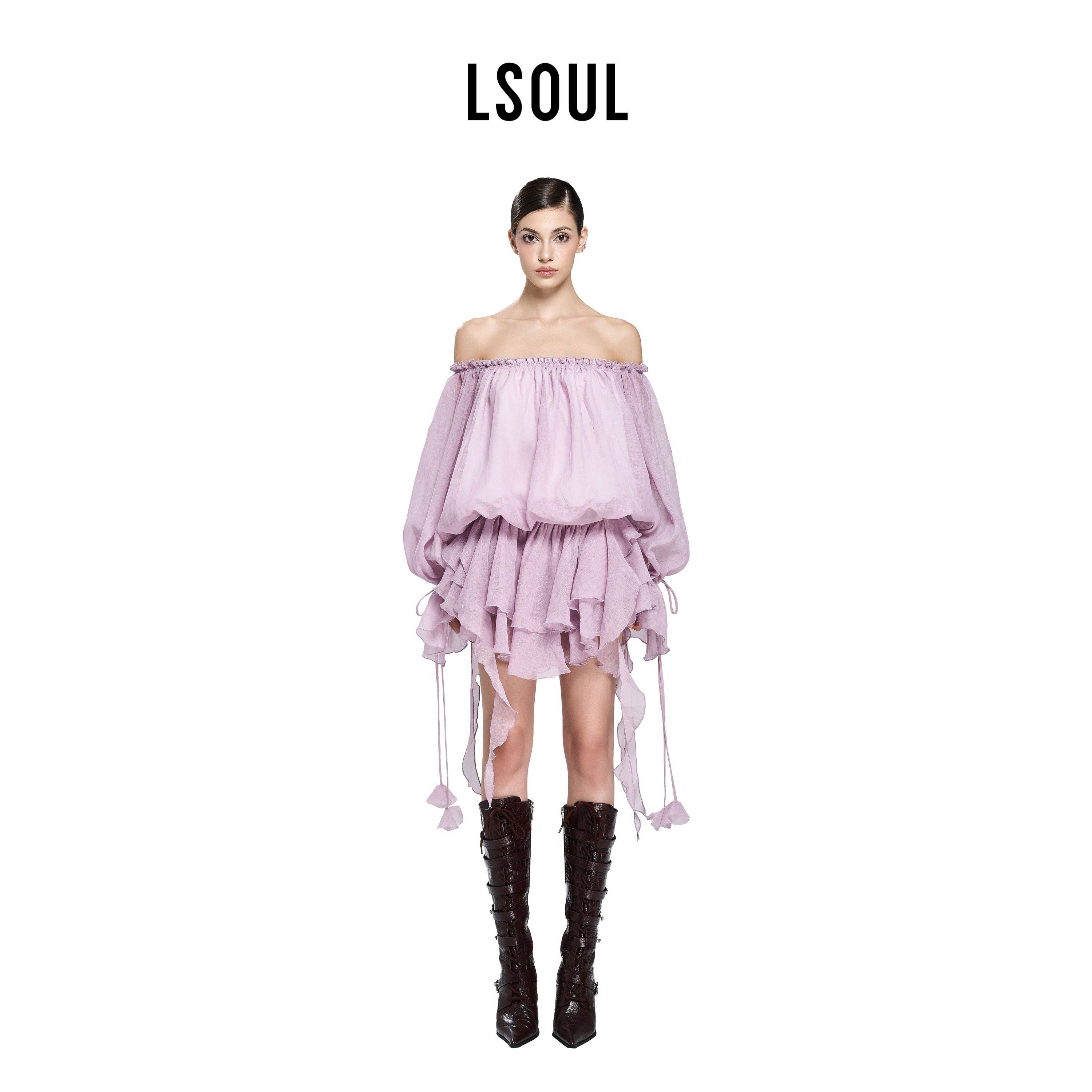 【张馨予同款】LSOUL温柔风长袖套装裙一字肩设计复古修身连衣裙