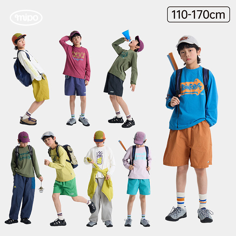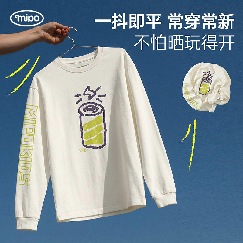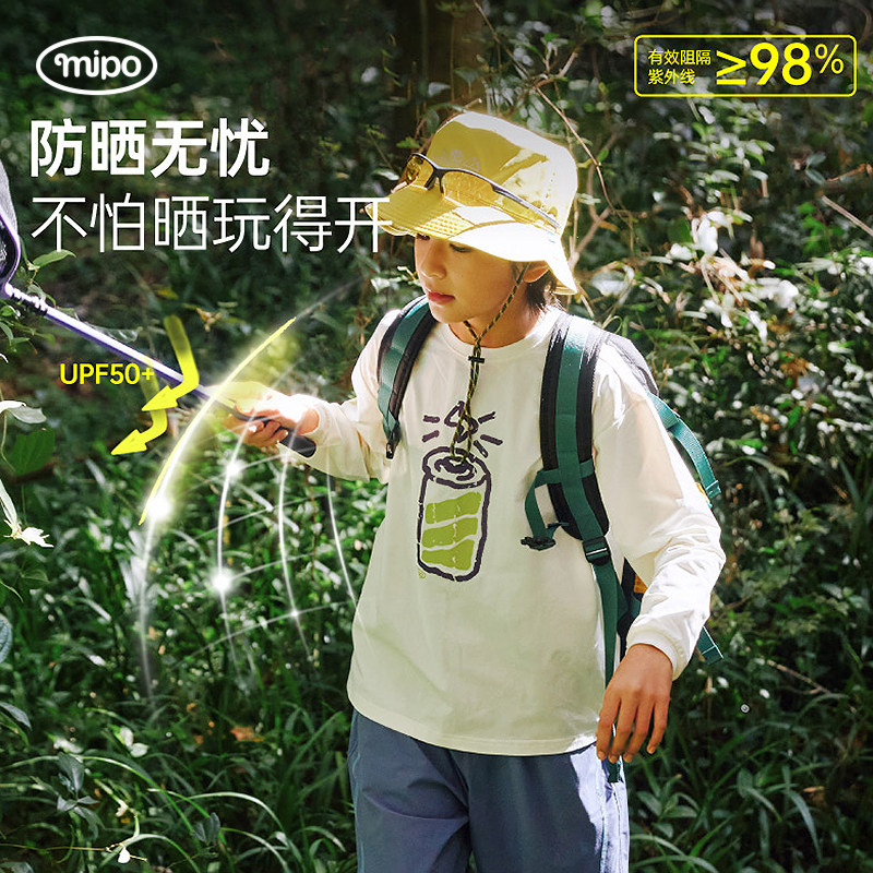 【旋风速干】mipo春季儿童t恤长袖防晒男女童户外运动宽松上衣白t