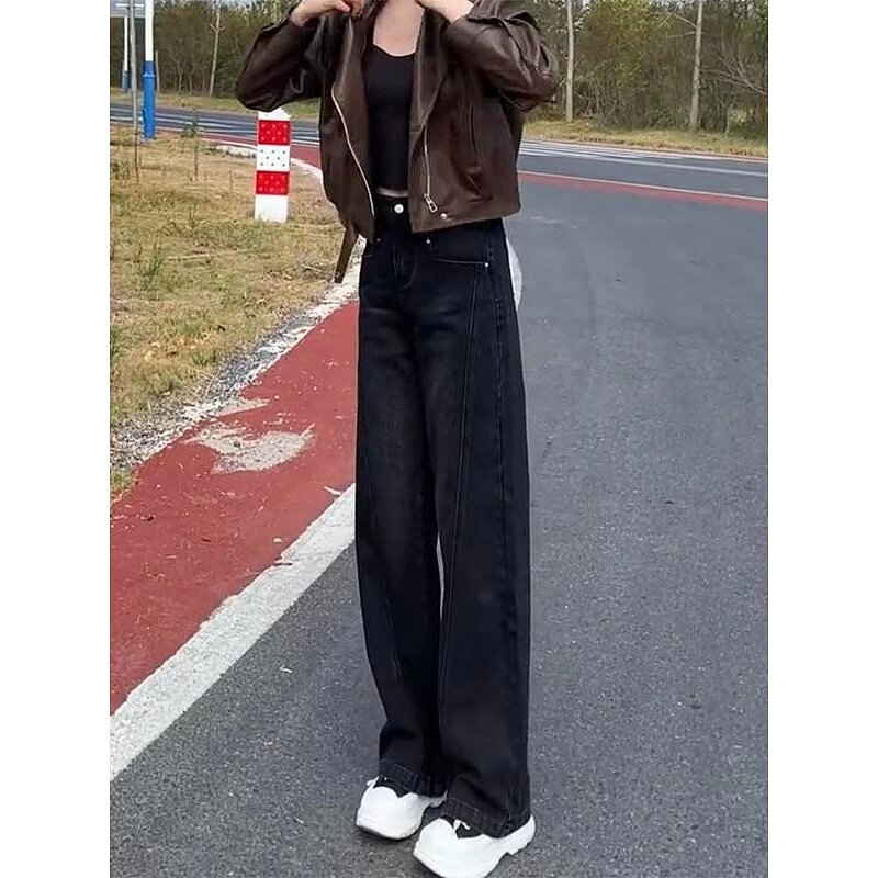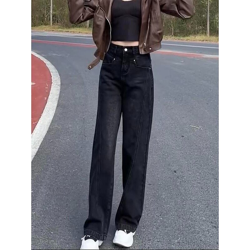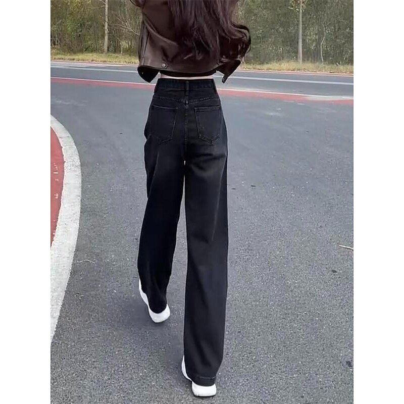 加绒加厚直筒牛仔裤2024年秋季新款女大码拖地裤显瘦宽松阔腿裤子