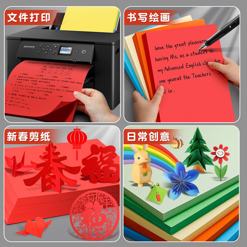 晨光彩色纸A4复印纸加厚80克学生用手工剪纸幼儿园用彩色纸80g不透纸100张双面打印打印纸办公用品批发学生用