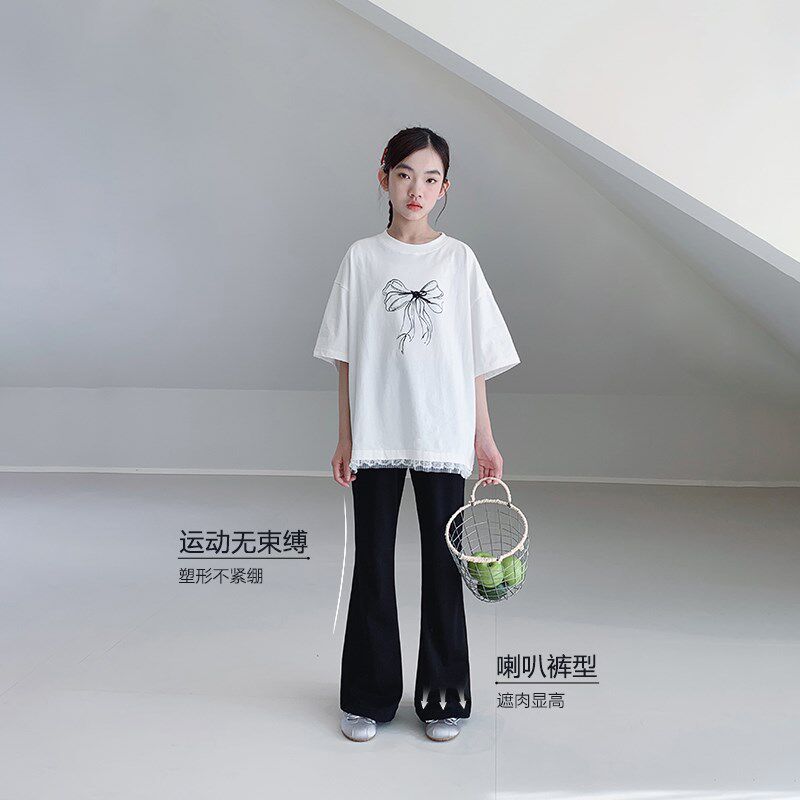 女大童喇叭裤2025夏装新款初中生薄款休闲长裤青少年简约高弹裤子