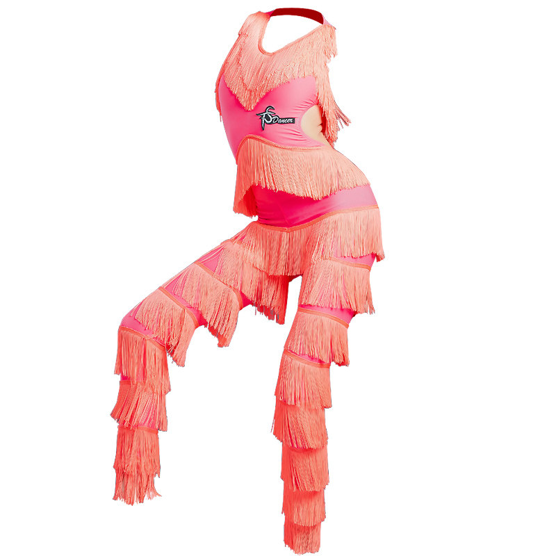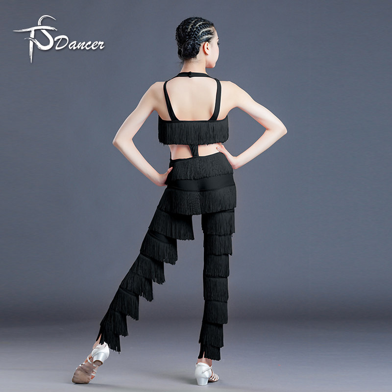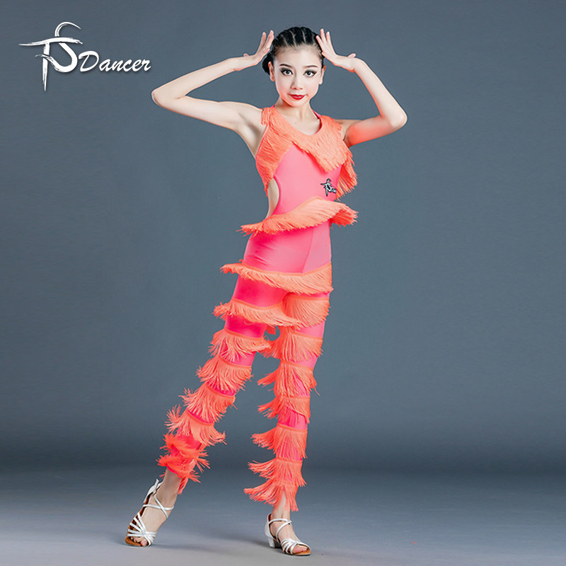 新款拉丁舞演出服女儿童拉丁舞服装专业比赛服流苏连体裤子表演服