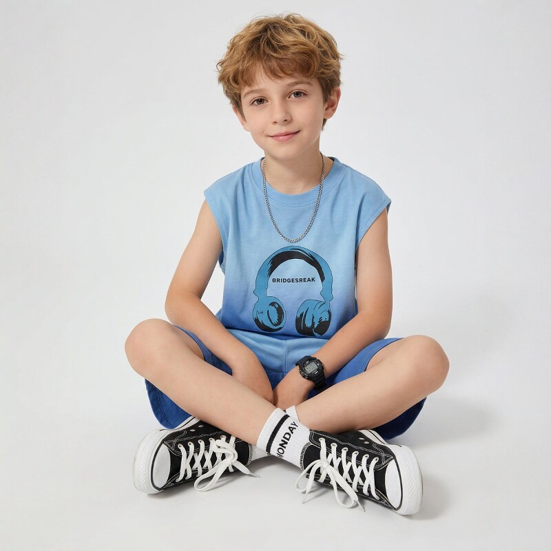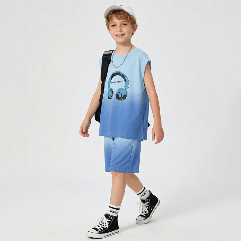 日本JGYP2026新款男童夏季薄款短袖运动套装儿童时髦潮酷T恤短裤