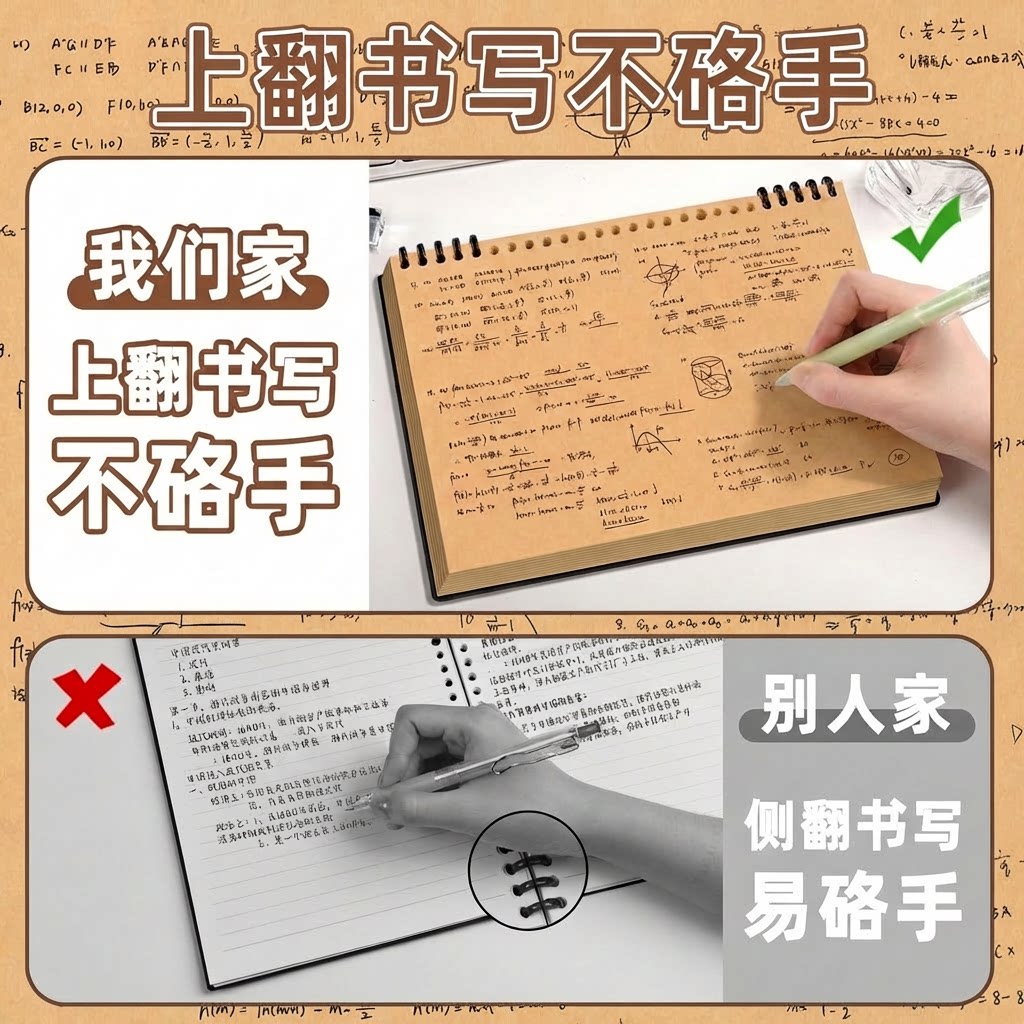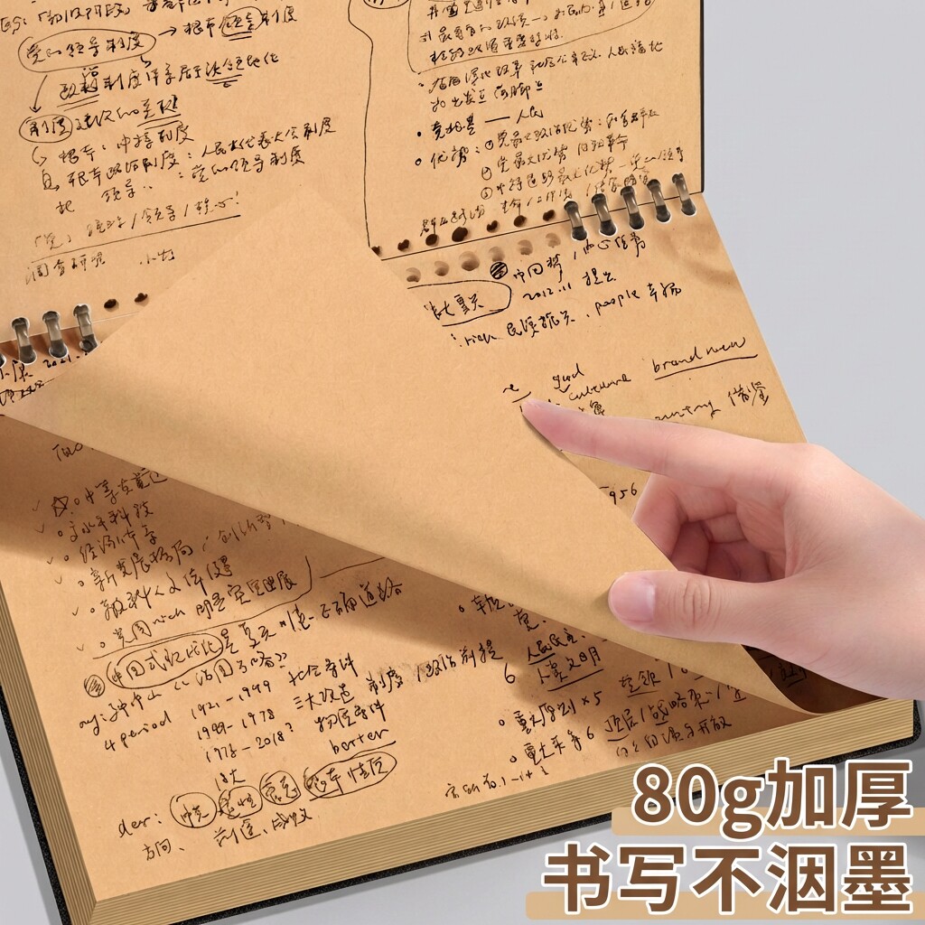 上翻牛皮纸活页本可拆卸活页笔记本本子牛皮空白本绘画素描本无线无格草稿本高中生初中生专用记事本记录本子