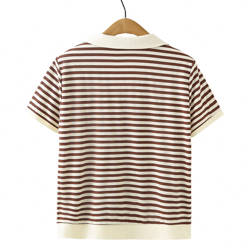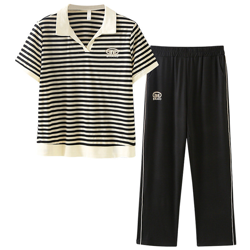 妈妈时尚休闲运动套装夏季新款洋气短袖条纹polo衫九分裤子两件套