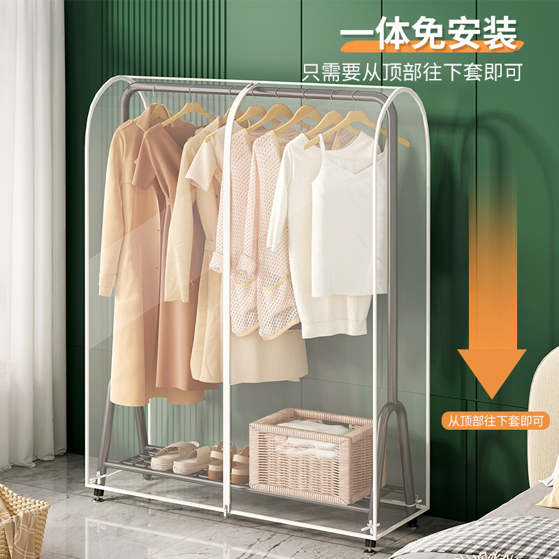 落地衣架防尘盖布简易双杆移动衣架防尘罩全包卧室家用透明全封闭