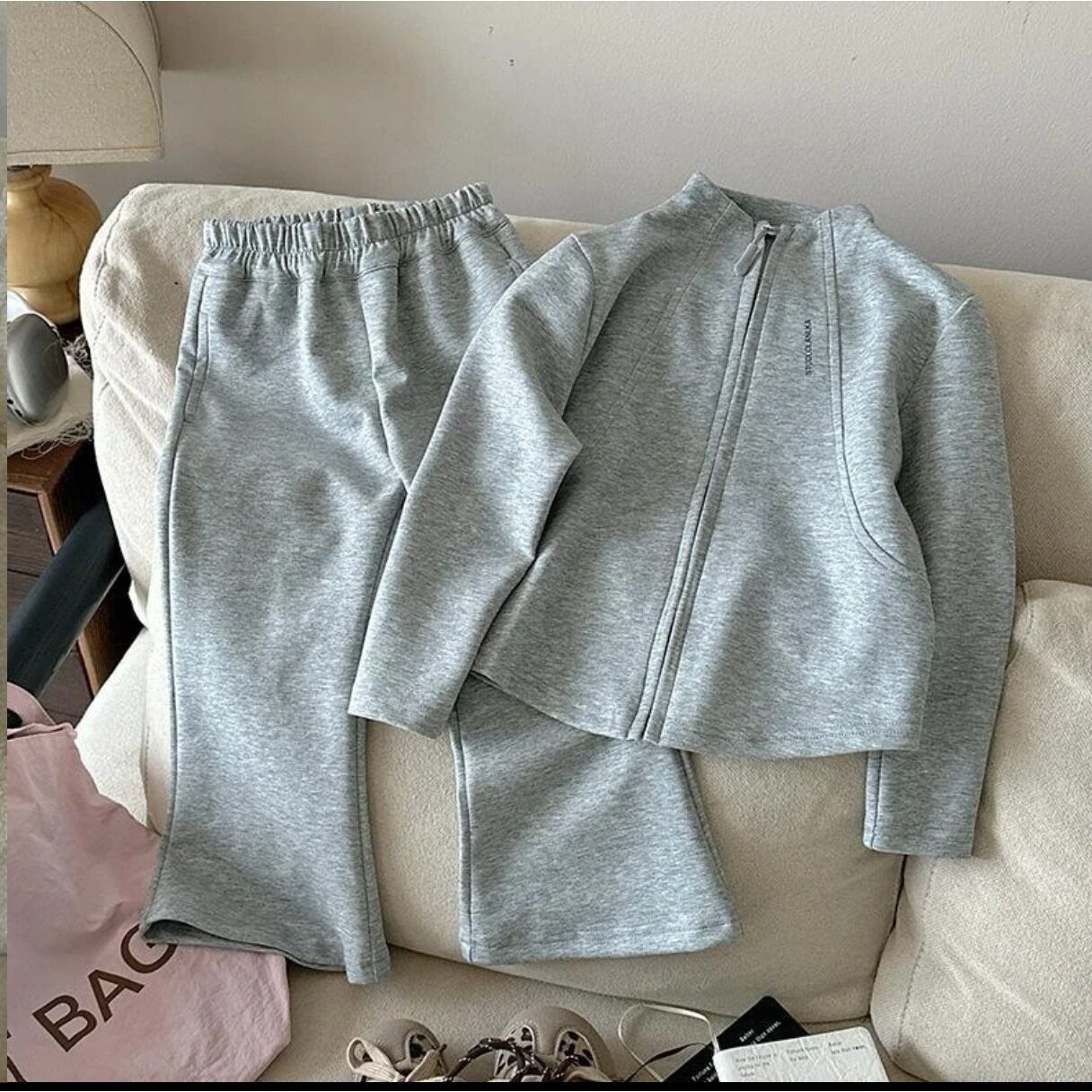 女童春秋款卫衣套装2026女宝宝韩版拉链短款外套儿童喇叭裤两件套