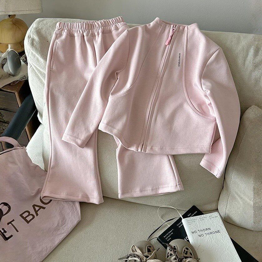 女童春秋款卫衣套装2026女宝宝韩版拉链短款外套儿童喇叭裤两件套