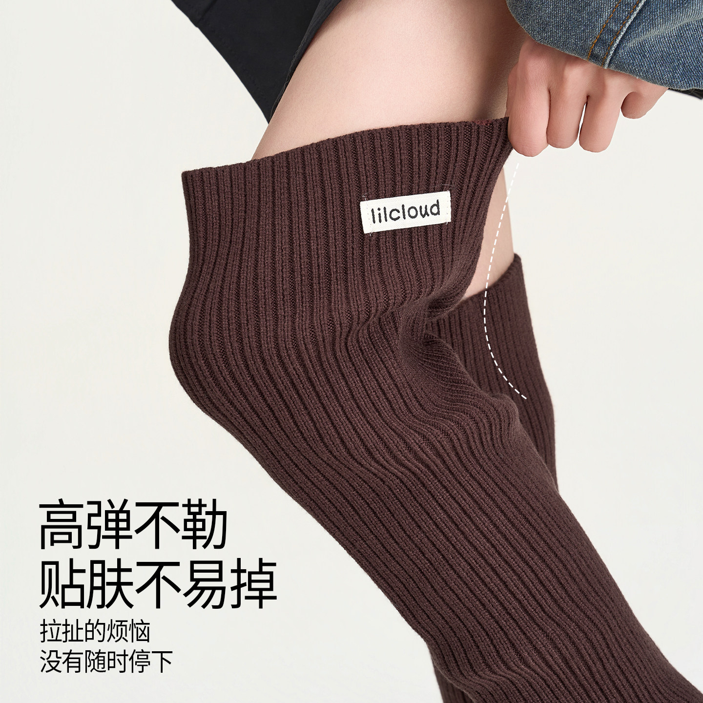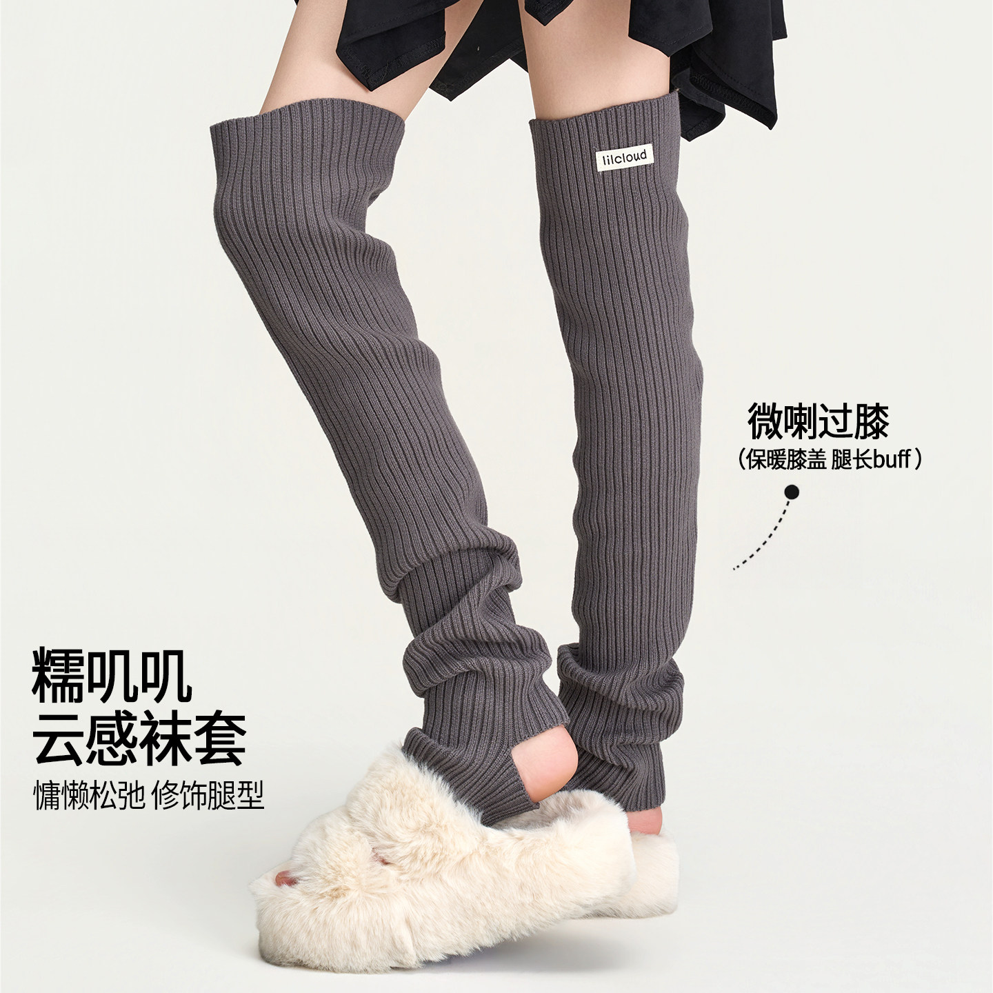 紫色过膝针织袜套女秋冬保暖显瘦长筒袜配瑜伽裤堆堆踩脚高筒腿套