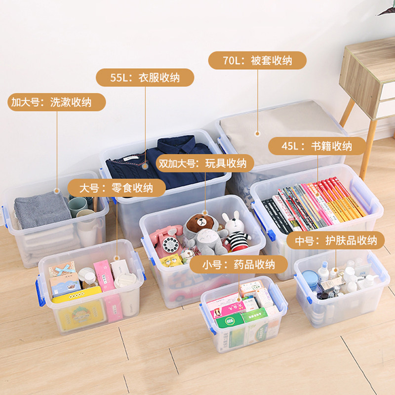 加厚透明收纳盒塑料大小号车载家用整理箱装玩具食品多功能储物盒