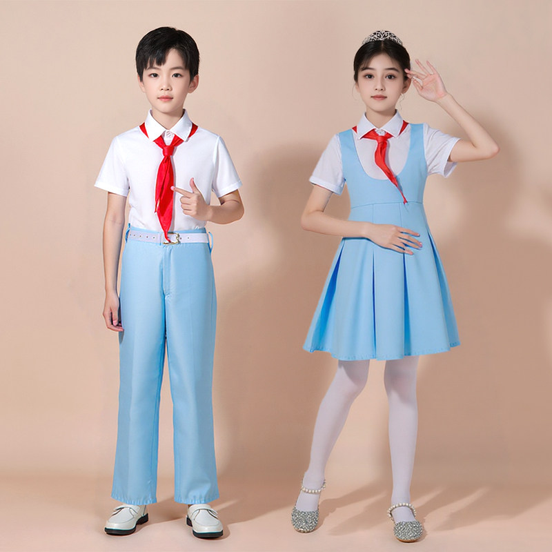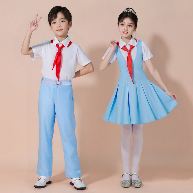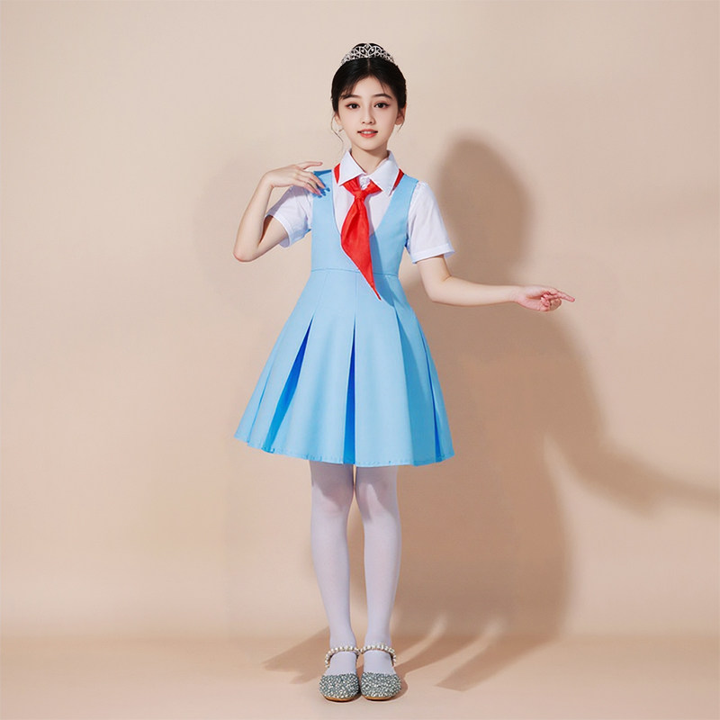 儿童合唱团小学生爱国演讲诗歌朗诵比赛演出服少儿蓝色女童礼服装
