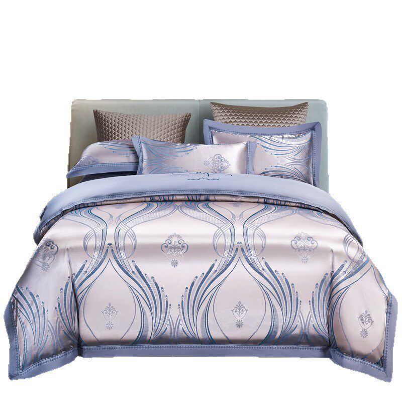 四件套轻奢绣花纯棉被套结婚庆大红四季通用刺绣家纺全棉贡缎提花