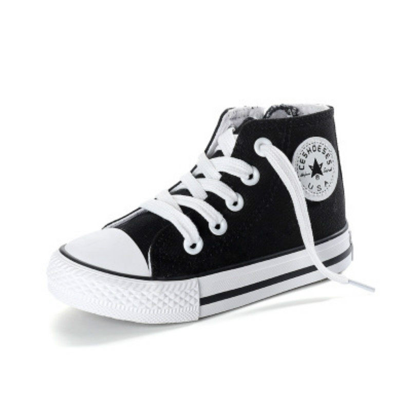 儿童中高帮童鞋帆布鞋女童系鞋带黑色布鞋经典板鞋男童球鞋小白鞋