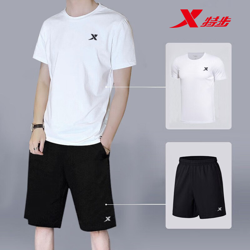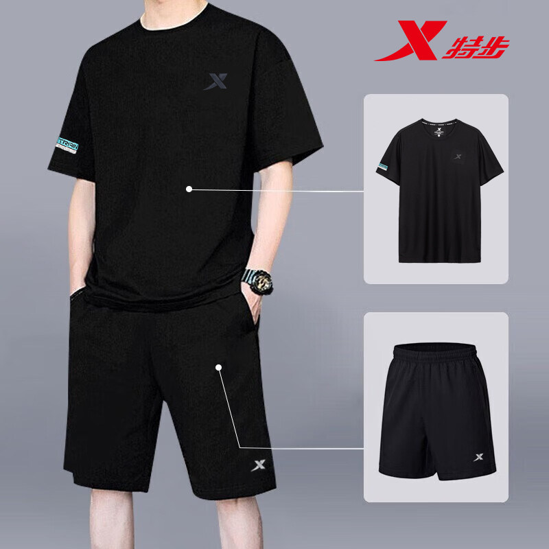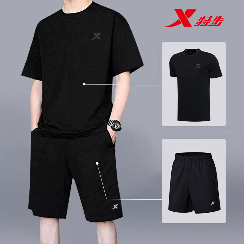 特步运动套装男夏季速干衣透气跑步服短袖短裤两件套健身房训练装