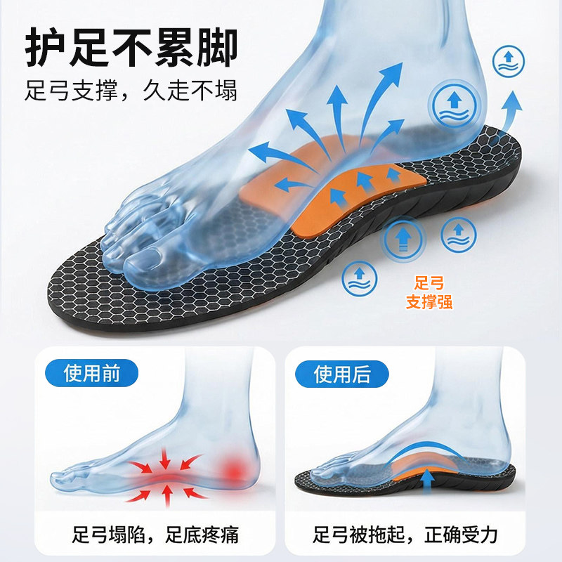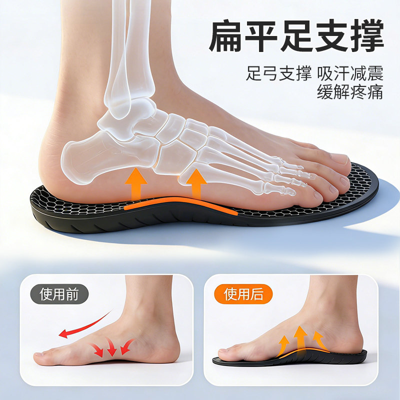 足弓支撑鞋垫石墨烯运动扁平足踩屎感防臭抗菌高弹减缓震透气吸汗
