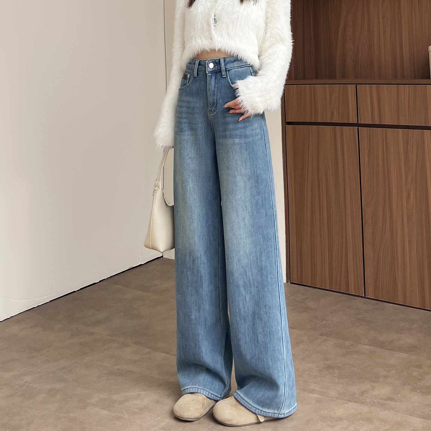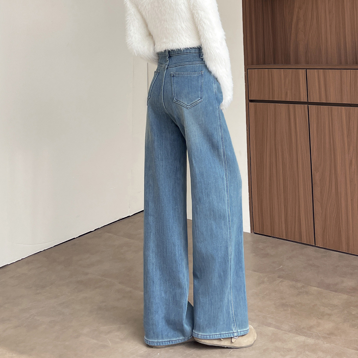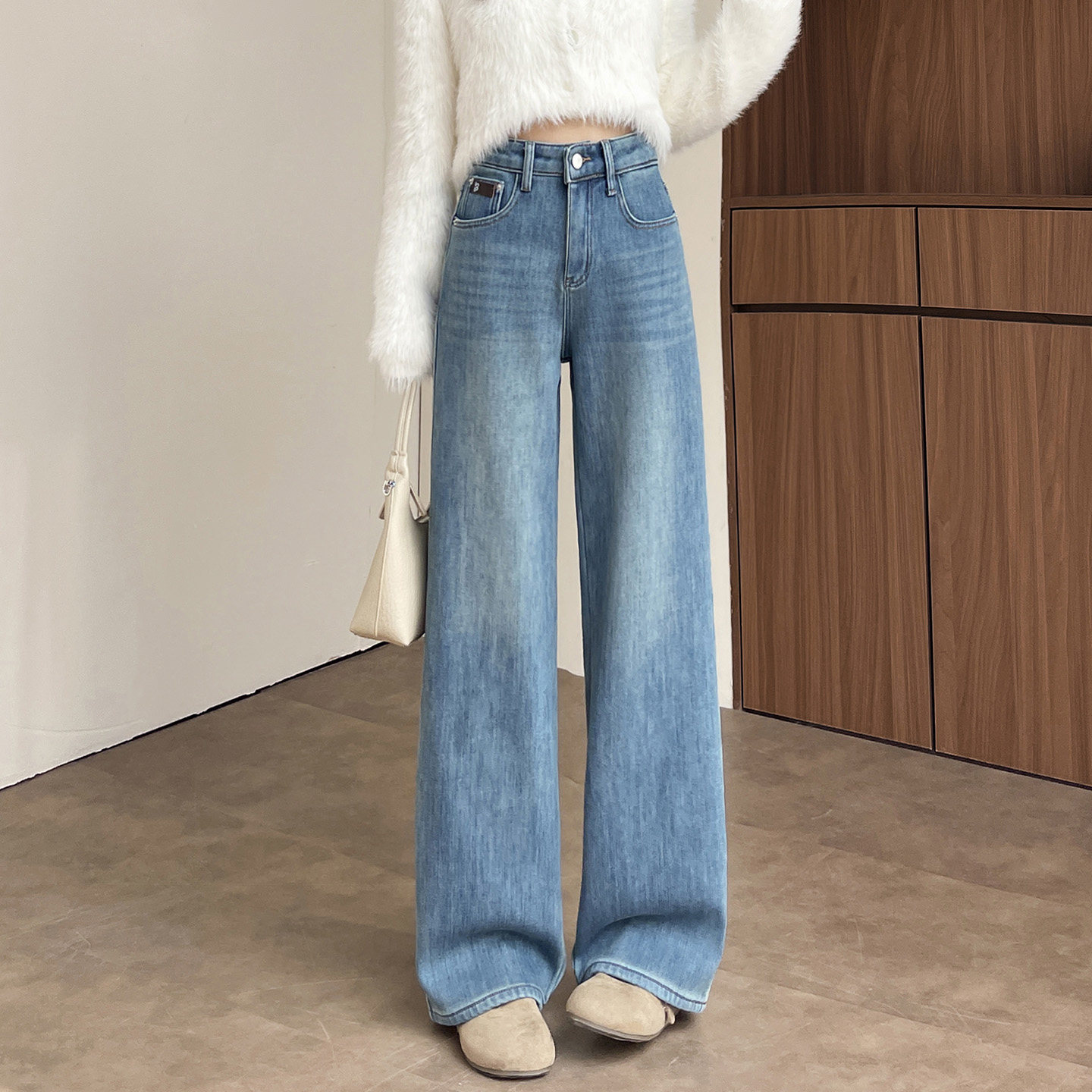 少女加绒加厚直筒裤子女冬季新款加长版超长170高个子175牛仔棉裤