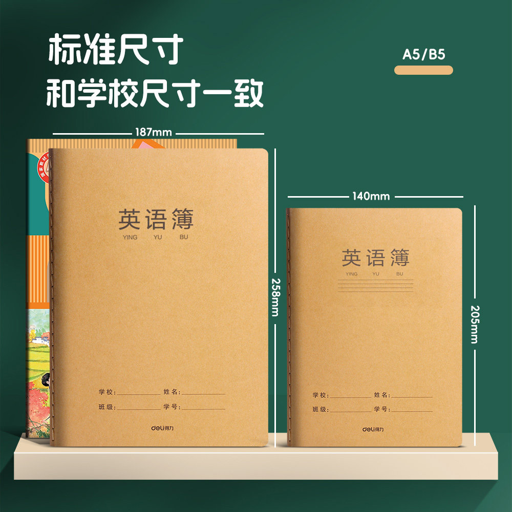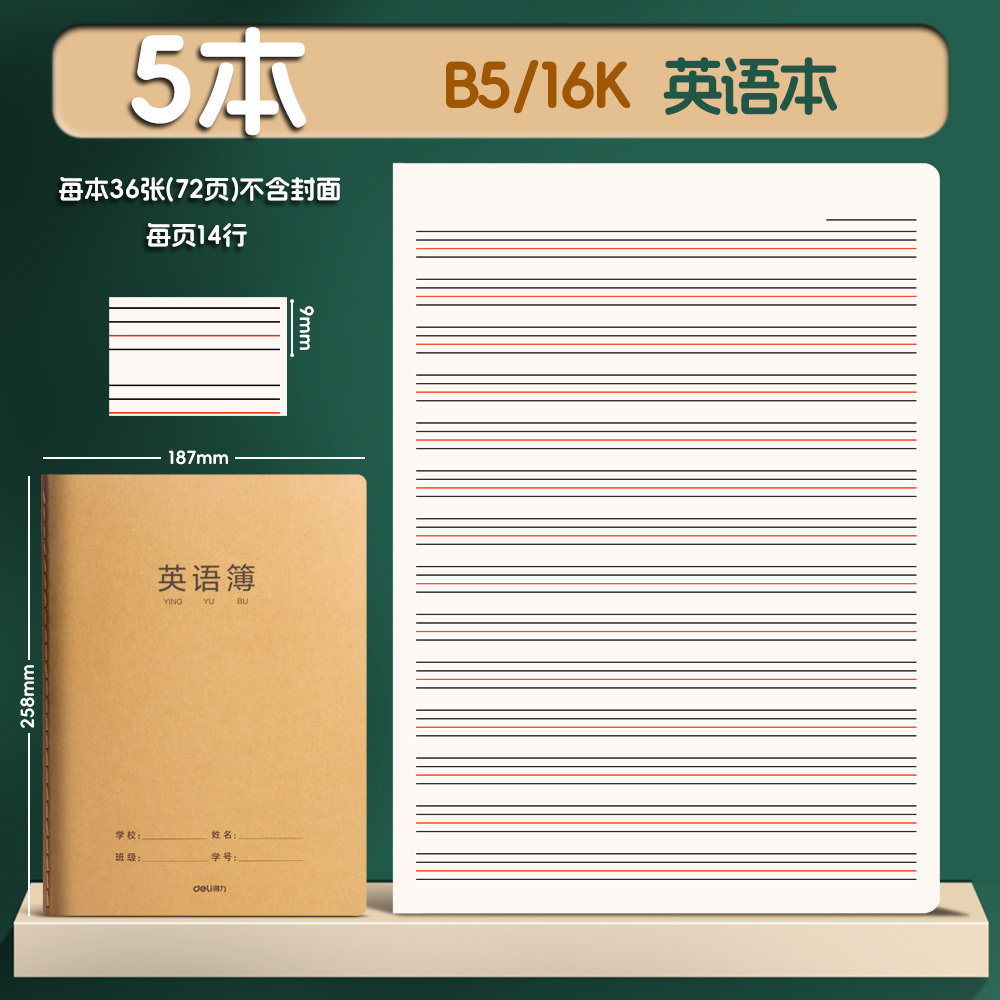 得力16k牛皮英语本小学生专用三年级A5英语纠错本初中生专用衡水体练习定位书写英语本加厚护眼英语笔记本B5