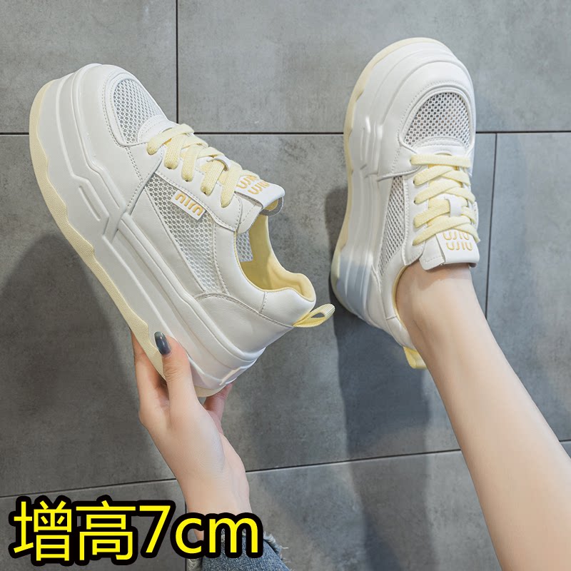 网面透气小白鞋女夏季内增高休闲板鞋厚底真皮小码女鞋32小个子33