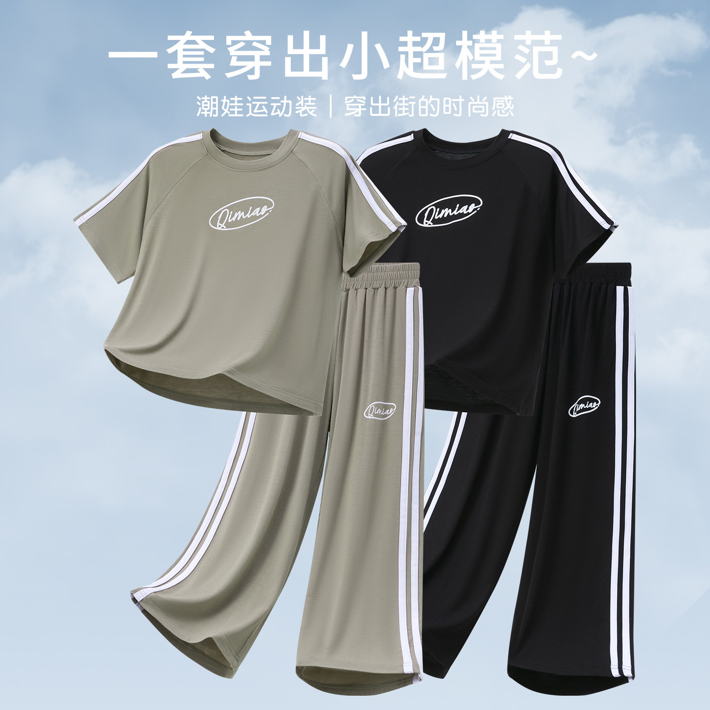 今年正流行拉条儿童莫代尔套装男童运动短袖两件套青少年睡衣薄款
