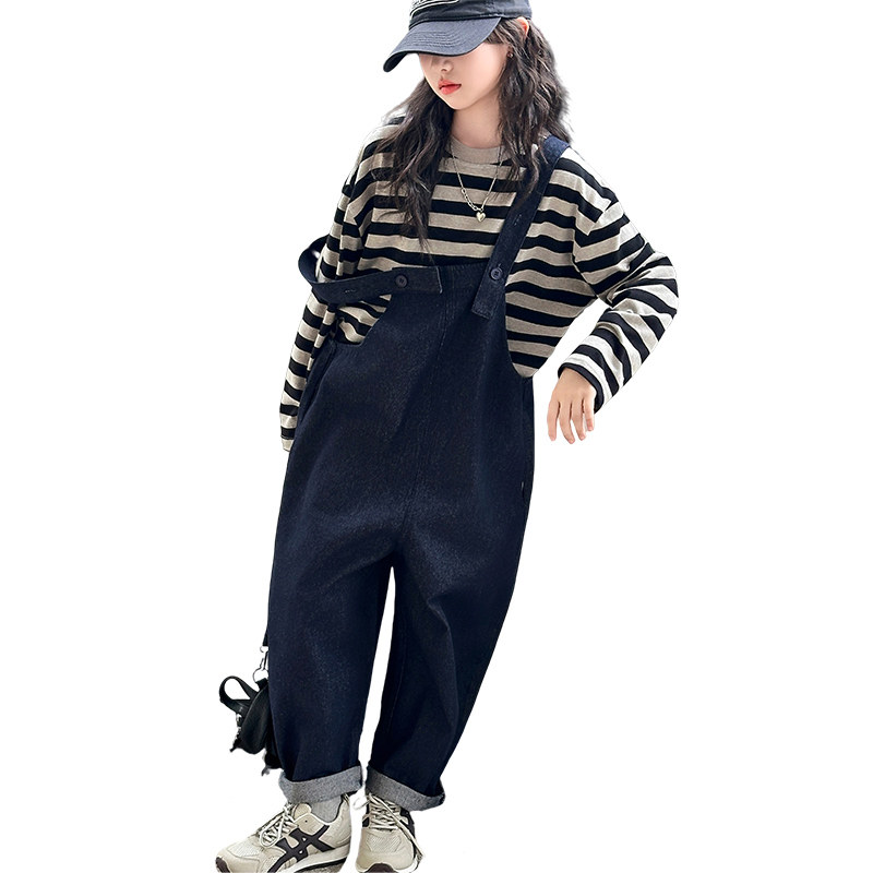 儿童背带裤女童套装2026春装新款洋气春秋大童女孩T恤时髦两件套