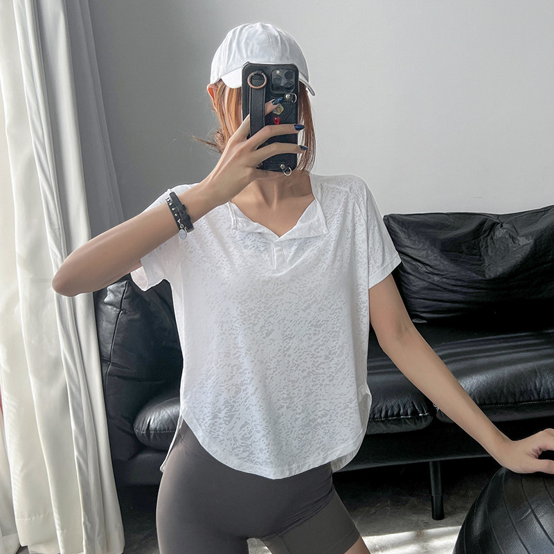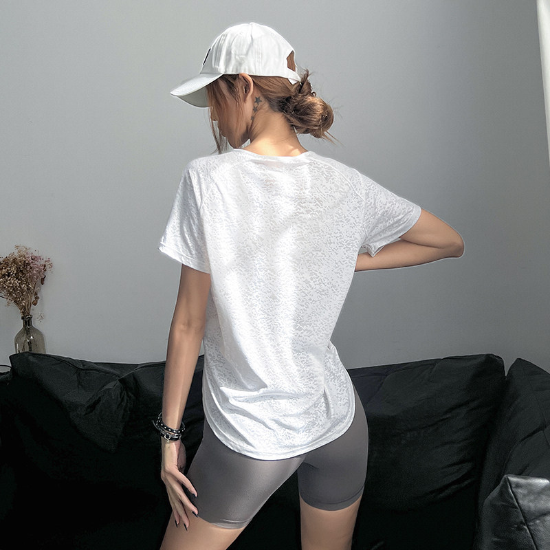 健身女孩薄款宽松运动罩衫遮肉短袖跑步训练休闲t恤瑜伽服上衣夏