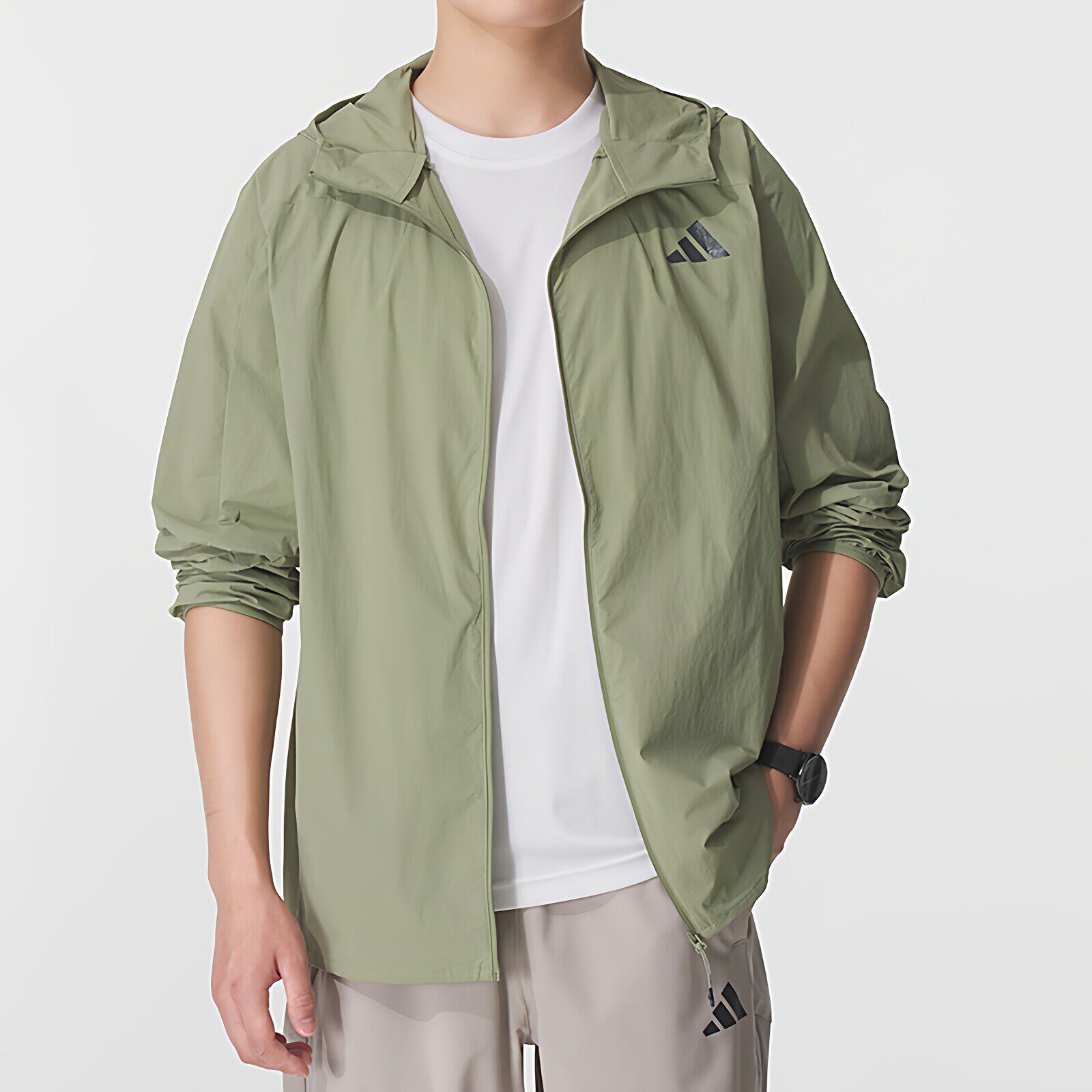 阿迪达斯绿色防风衣男春季新款透气连帽梭织复古薄款外套男KB5158