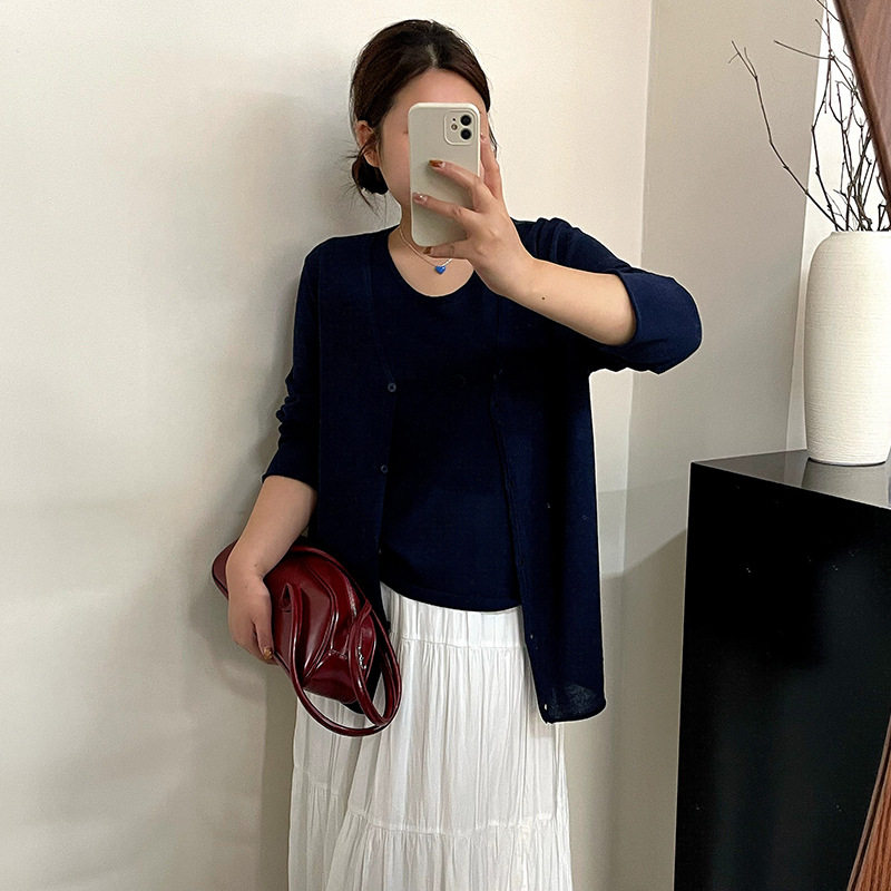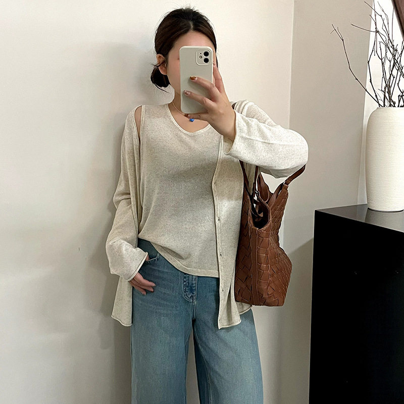 大码女装内搭背心女开衫v领针织套装2026春款胖mm休闲两件套23772