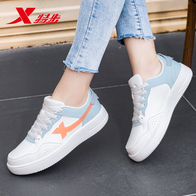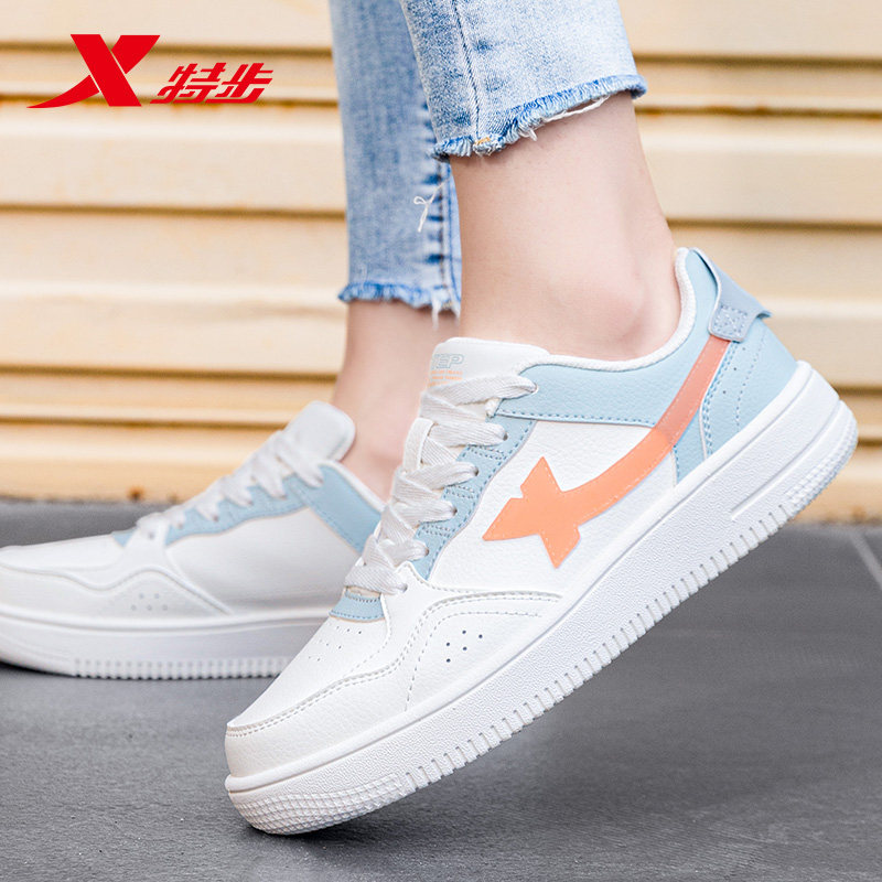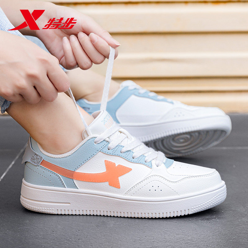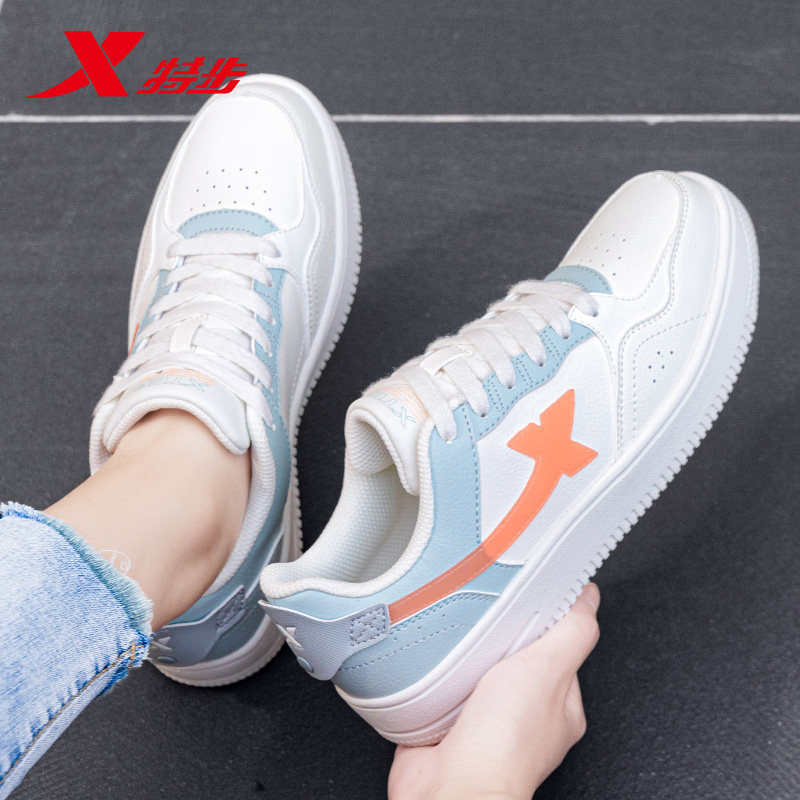 特步女鞋小白鞋女款白色休闲鞋子女春季皮面防水官方旗舰店运动鞋
