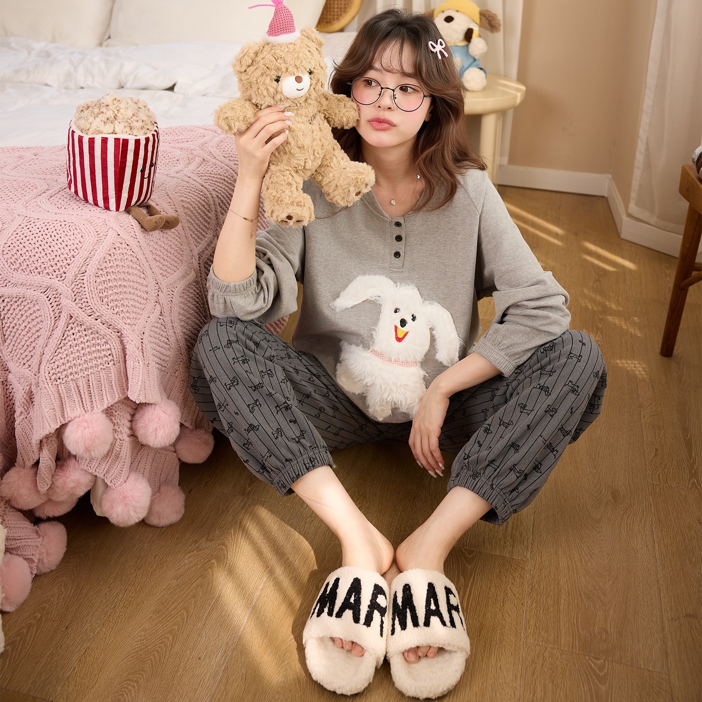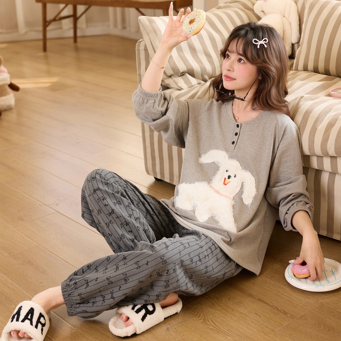 纯棉睡衣女款2026新款春秋季带胸垫长袖可爱卡通100%全棉家居服冬
