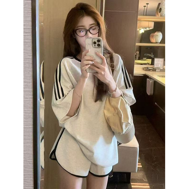 短裤休闲运动套装女夏2025学生体育跑步班服宽松大码小个子两件套