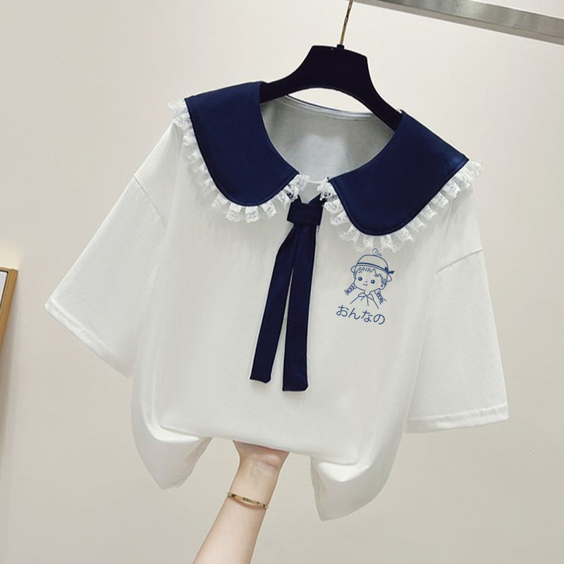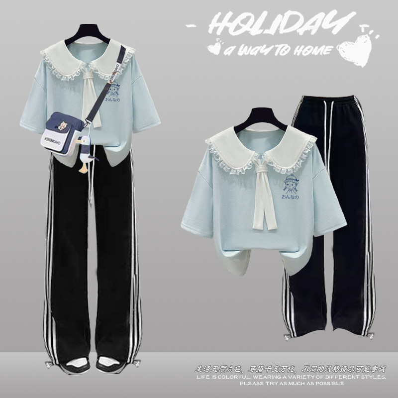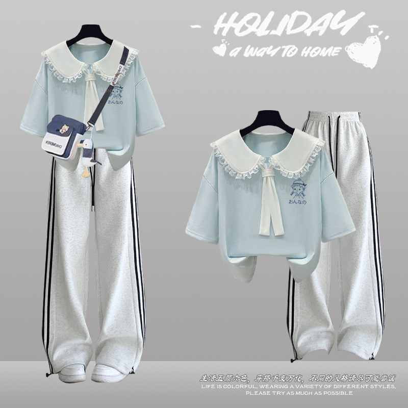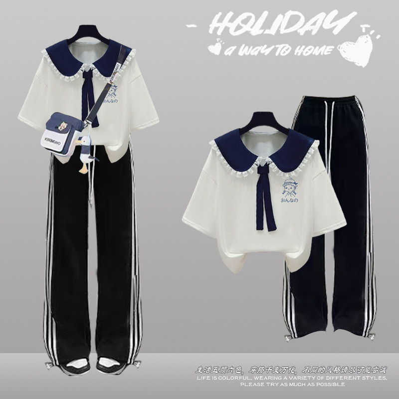 大童学生海军领短袖T恤女2025夏季新款初中生宽松休闲运动套装