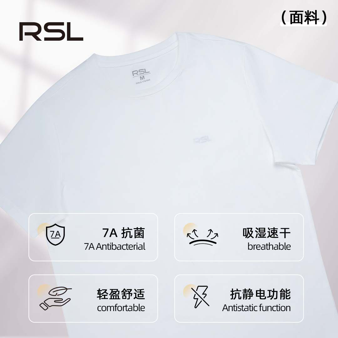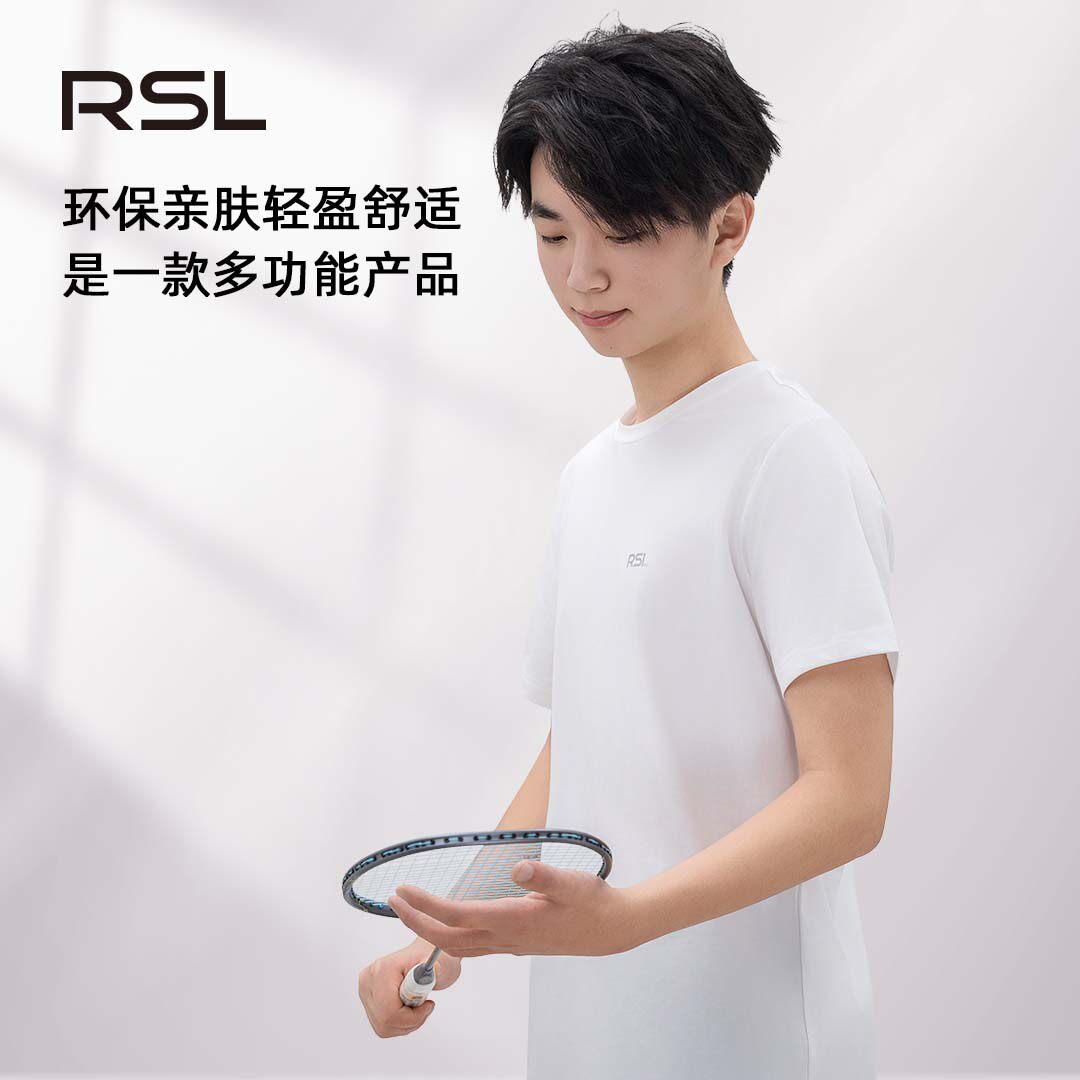 新款RSL/羽毛球服短袖男款速干运动白色上衣简约训练服