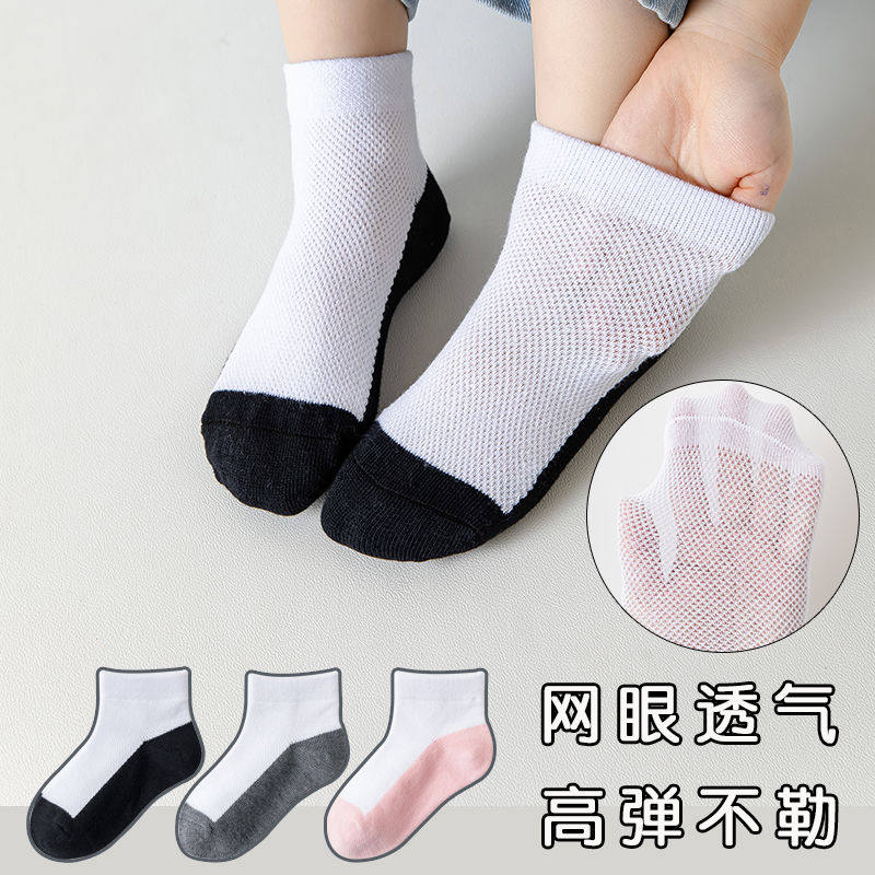 儿童白色袜子短筒棉袜夏季薄款学生男女童白袜网眼透气船袜运动袜